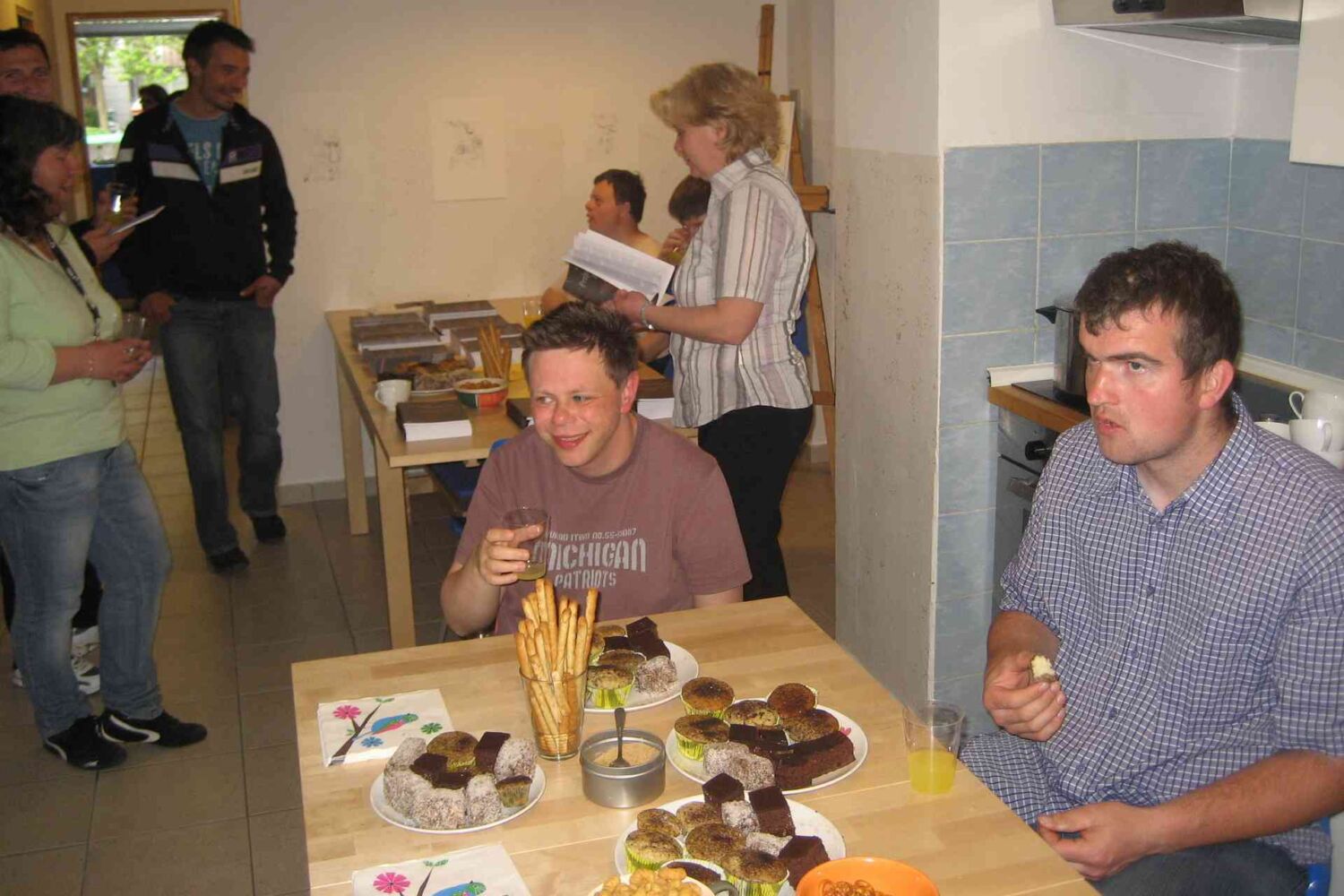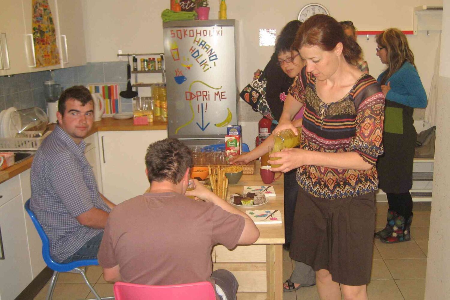 Nekaj škofjeloških uporabnikov si je na dan odprtih vrat ogledalo njihove prostore, njihove programske vsebine in zbirko osebno-izpovednih zgodb “Prtljaga preteklosti” s kreativnimi upodobitvami, ki so jih ustvarili mladostniki.