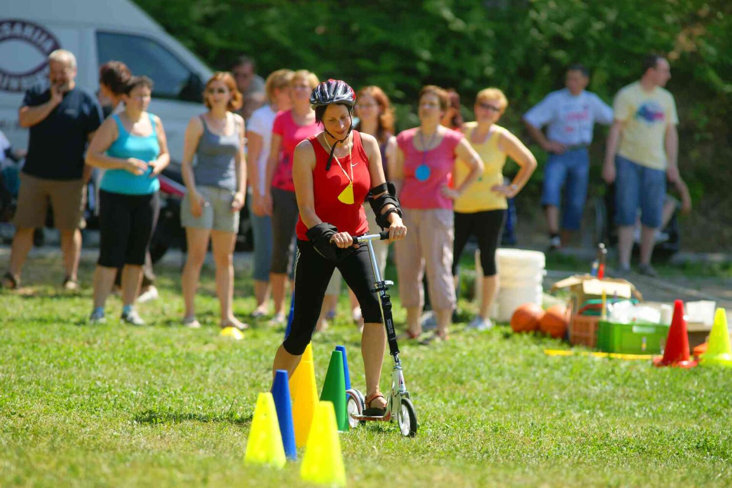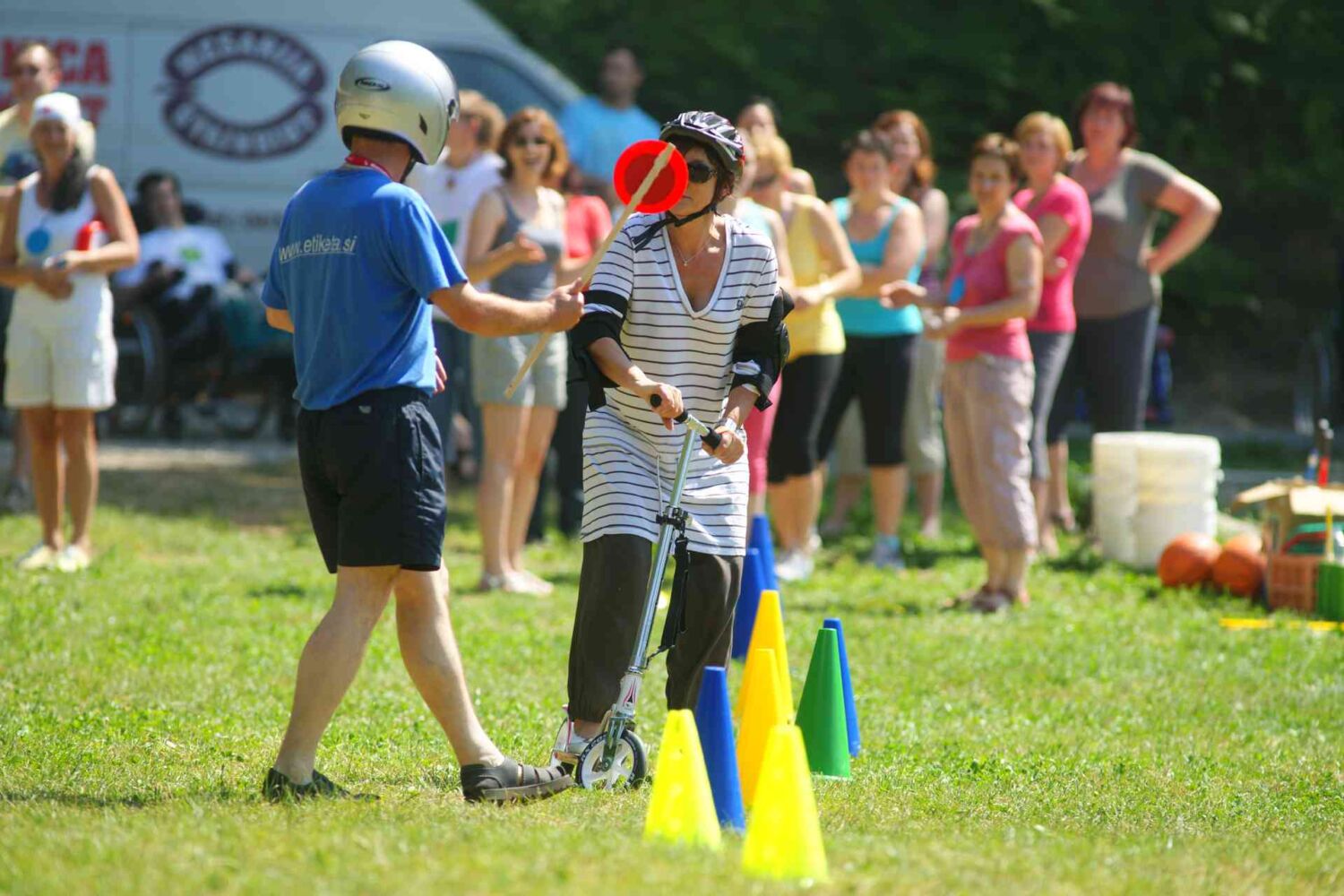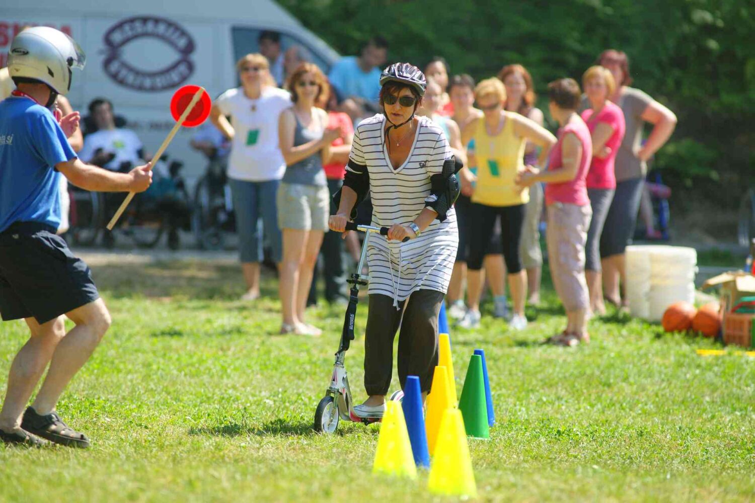 Zaposleni so se pomerili v hitrostni vožnji s skirojem, da pa je potekalo vse po predpisih, je poskrbel policaj Aci.