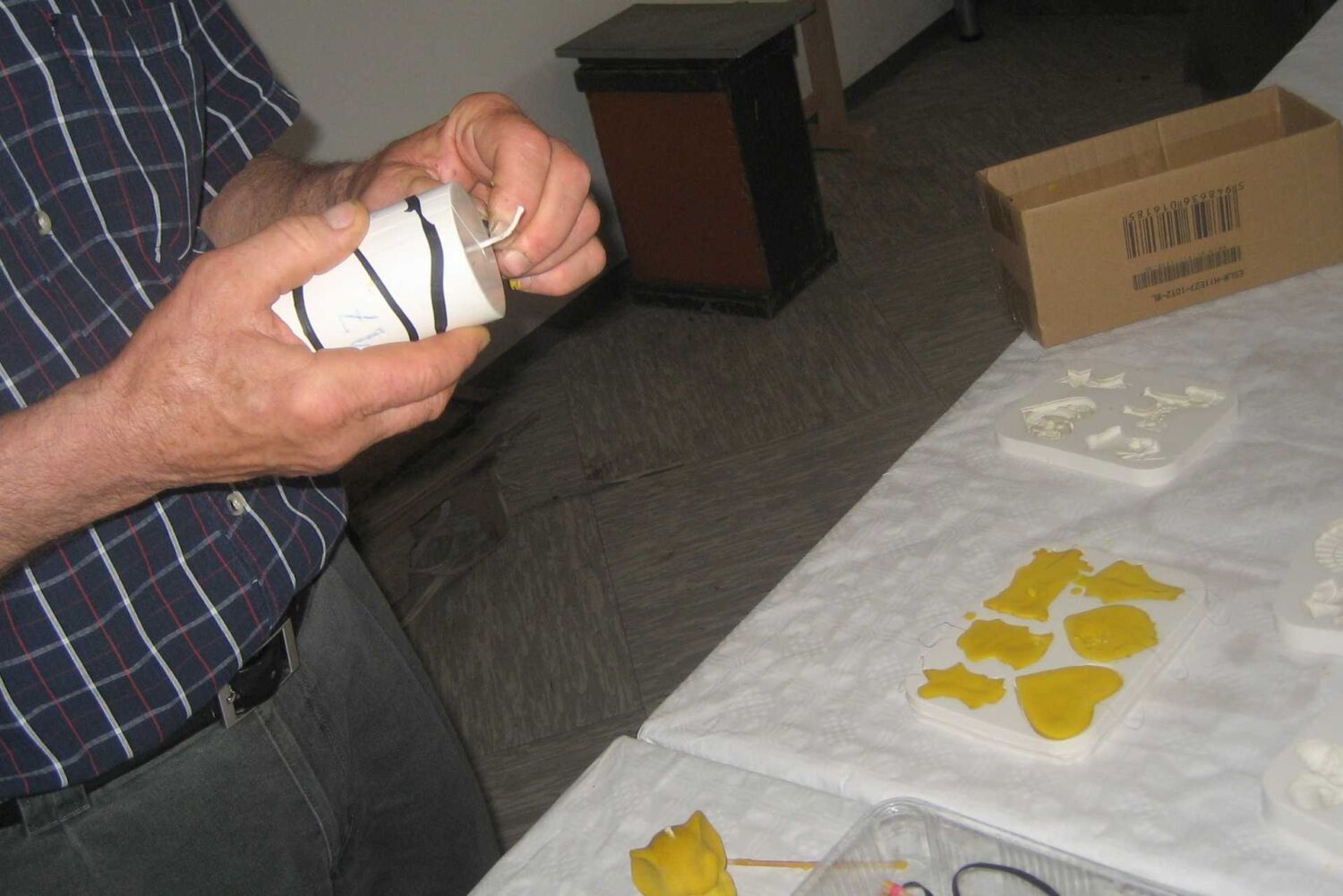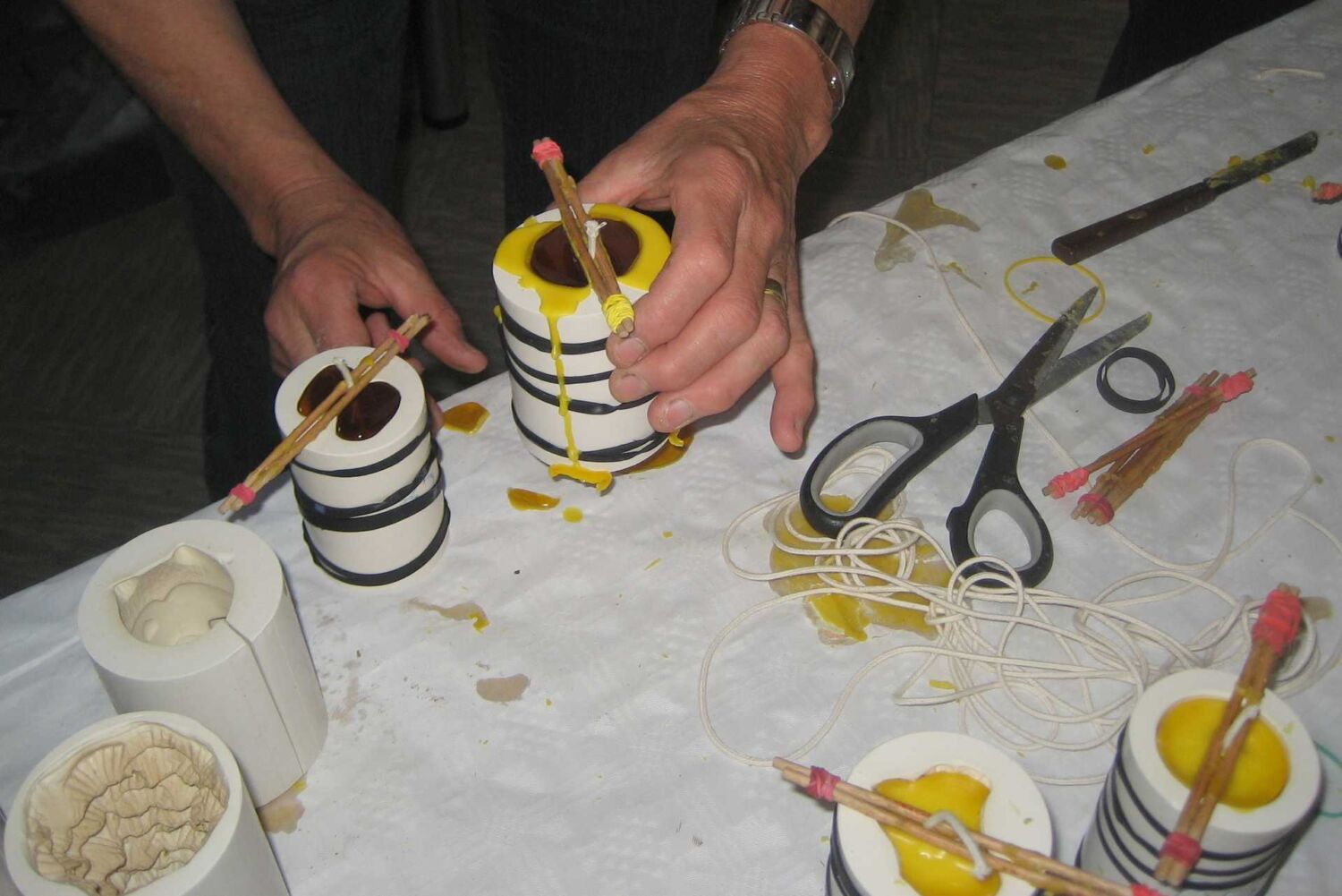 Tudi sami smo se preizkusili v vlivanju voska, zvijanju satnic in tako izdelali kar nekaj izdelkov, ki smo jih z veseljem odnesli domov.