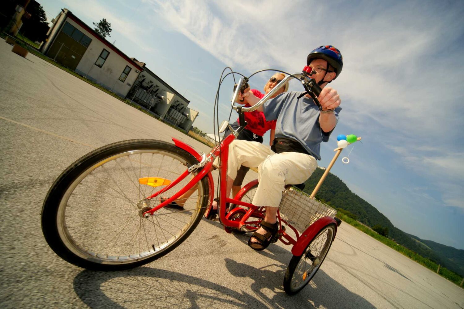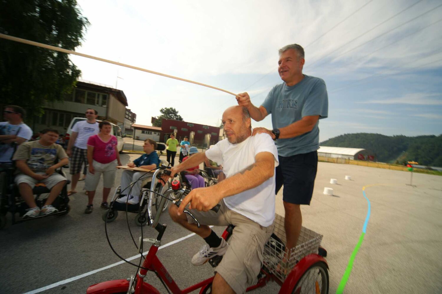 V bližnji in daljni okolici zavoda imamo krajše, daljše, bolj in manj zahtevne kolesarske poti. Naši uporabniki jih v spremstvu zaposlenih uspešno premagujejo. Za vožnjo uporabljajo dvokolesnike in trikolesnike, glede na njihove telesne zmožnosti, gibalne oviranosti in sposobnosti.