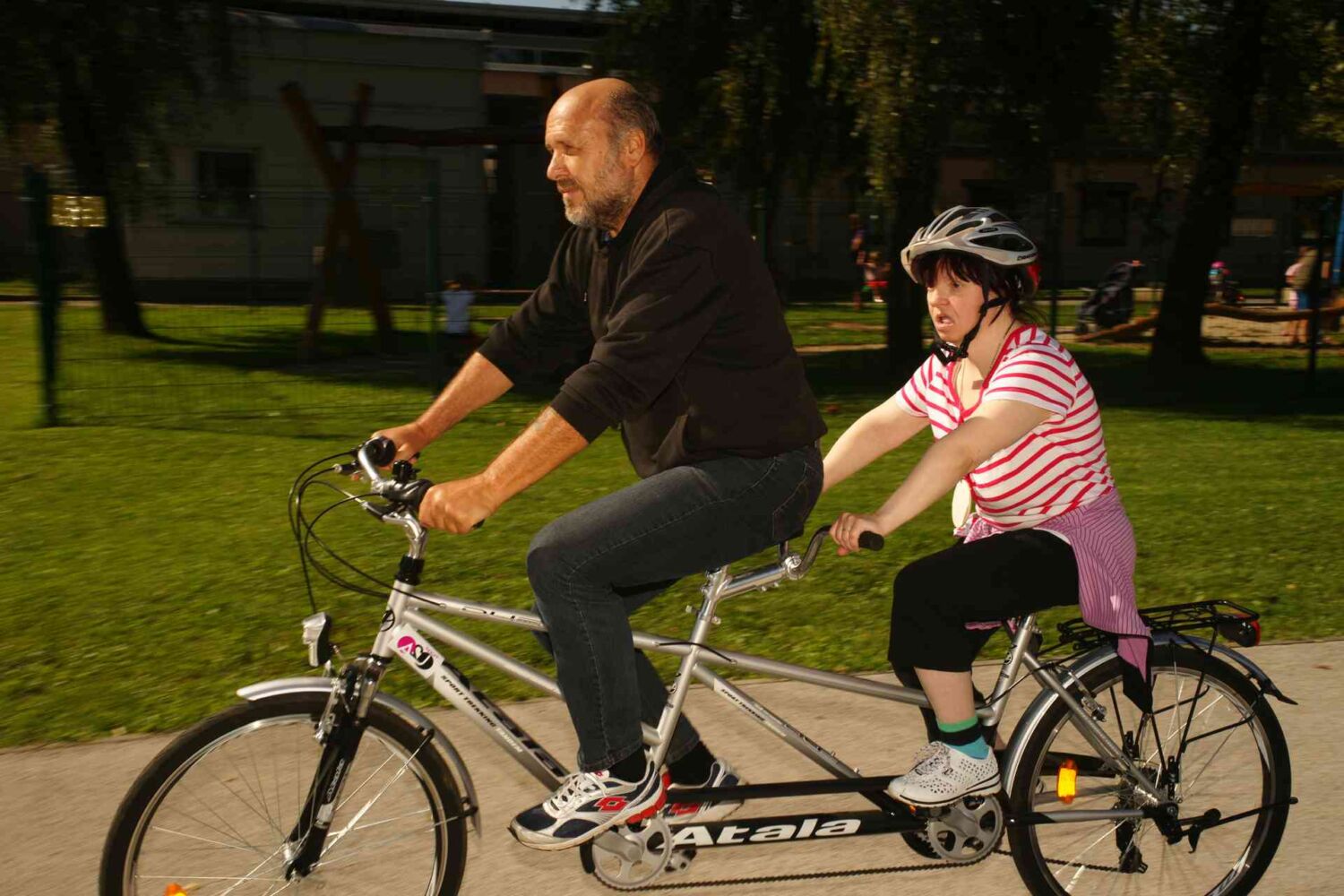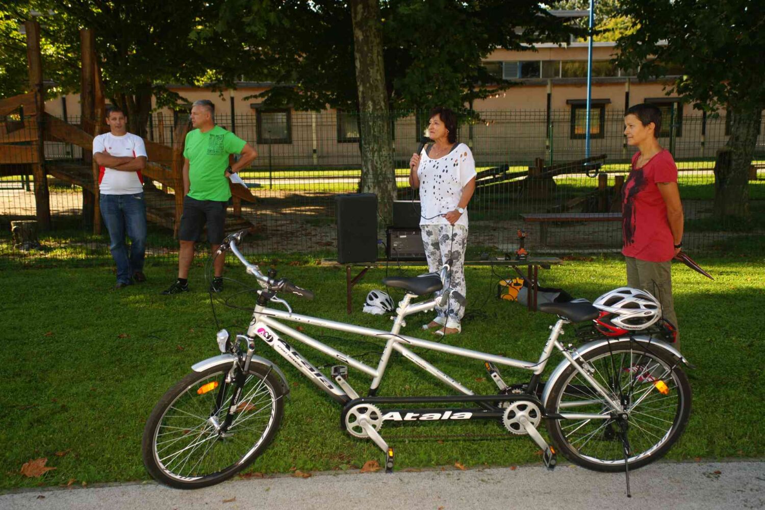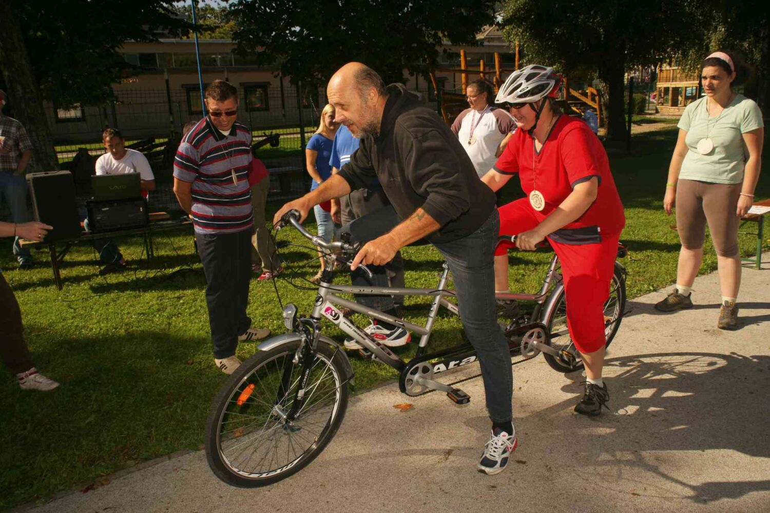 Ena od spretnostnih nalog  je vsebovala tudi vožnjo z našo novo pridobitvijo, kolesom za dve osebi, na katerem sta se peljala zaposleni in uporabnik. Donatorjem se najlepše zahvaljujemo za donacije, saj nam brez njihove pomoči ne bi uspelo kupiti kolesa. V vožnji v paru, uporabnik skupaj z zaposlenim, ki mu zaupa, gradi občutek varnosti, zavedanja da zmore, se telesno razgiba in se kot kolesar, udeleženec v prometu, počuti enakovrednega. Vsi uporabniki, ki so sodelovali v vožnji z novim kolesom, so se izkazali tudi v znanju cestno prometnih predpisov.