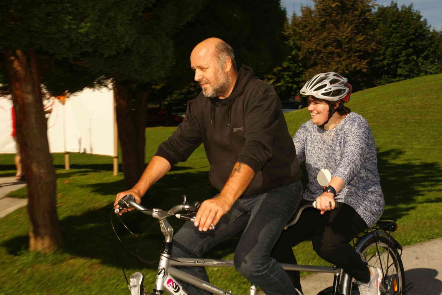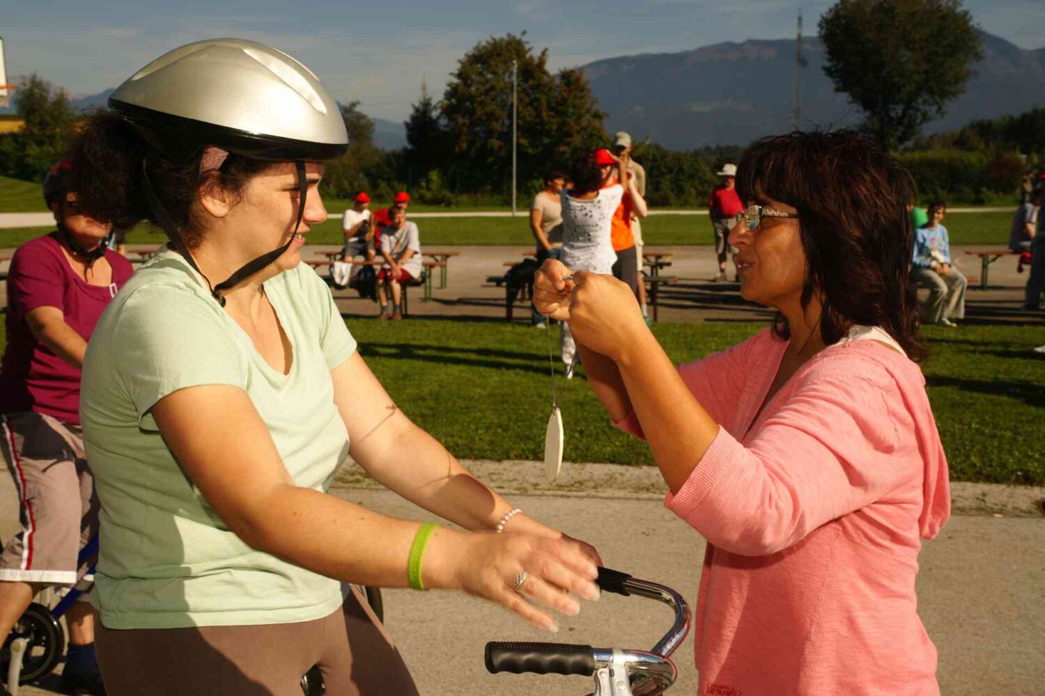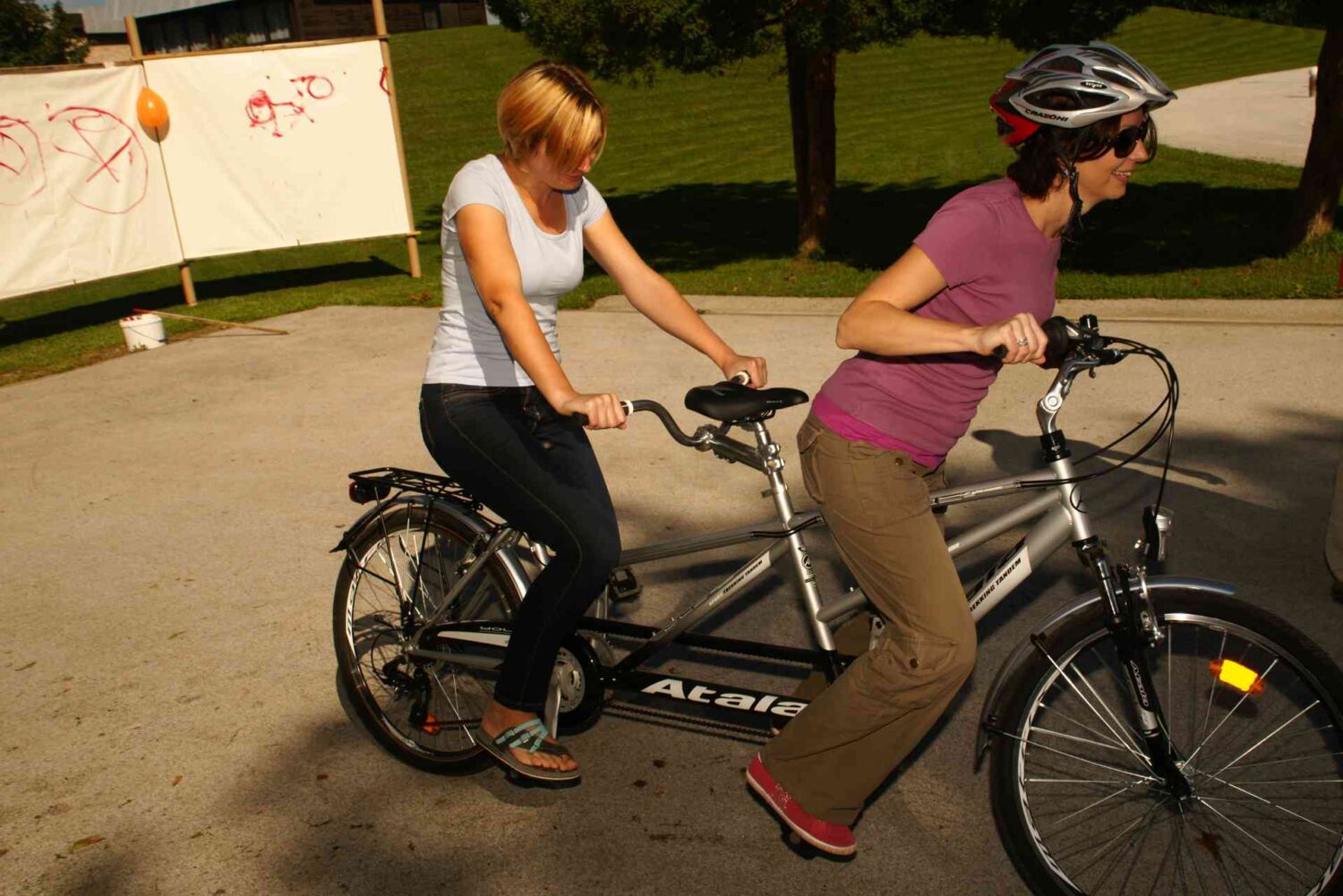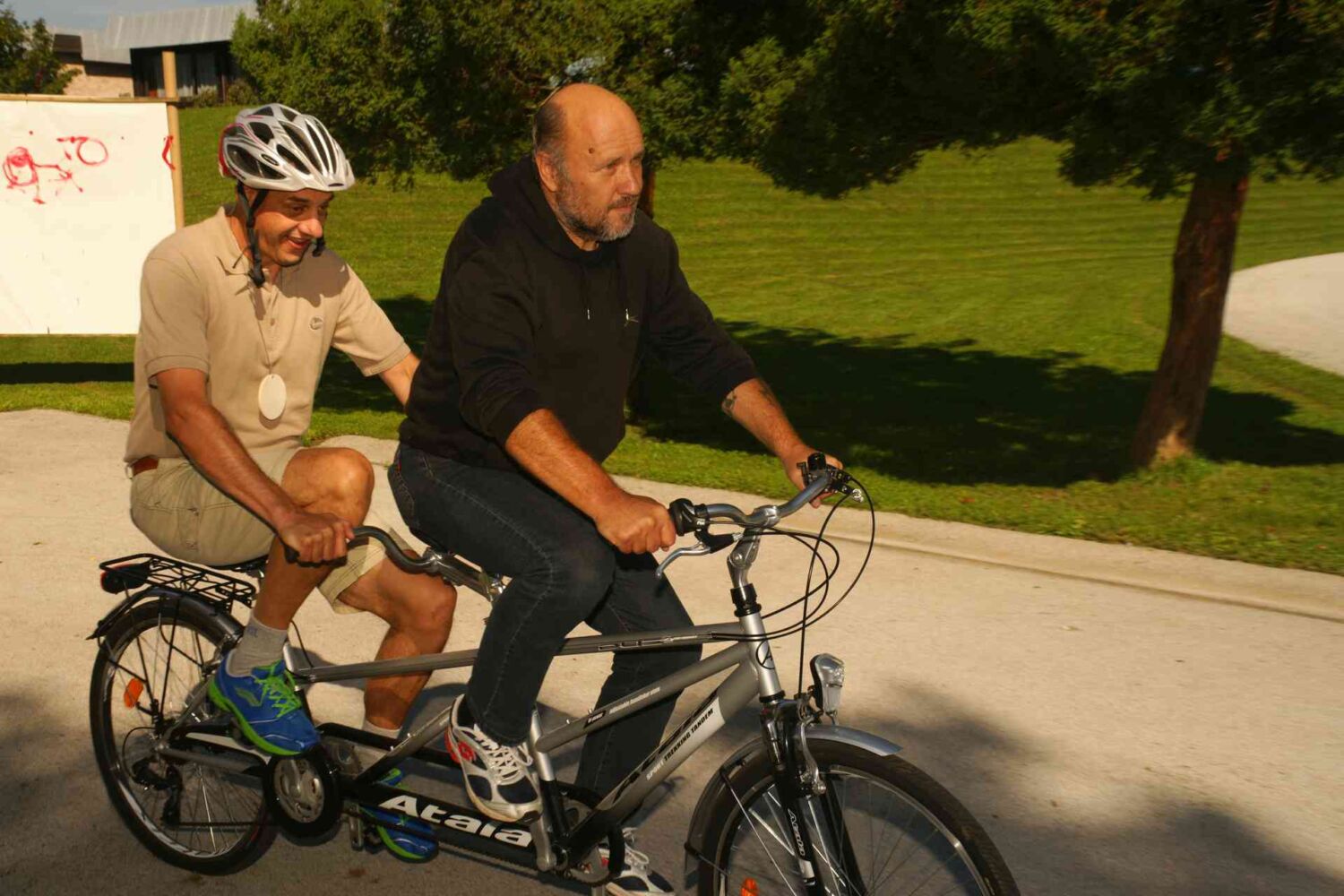 Ena od spretnostnih nalog  je vsebovala tudi vožnjo z našo novo pridobitvijo, kolesom za dve osebi, na katerem sta se peljala zaposleni in uporabnik. Donatorjem se najlepše zahvaljujemo za donacije, saj nam brez njihove pomoči ne bi uspelo kupiti kolesa. V vožnji v paru, uporabnik skupaj z zaposlenim, ki mu zaupa, gradi občutek varnosti, zavedanja da zmore, se telesno razgiba in se kot kolesar, udeleženec v prometu, počuti enakovrednega. Vsi uporabniki, ki so sodelovali v vožnji z novim kolesom, so se izkazali tudi v znanju cestno prometnih predpisov.
