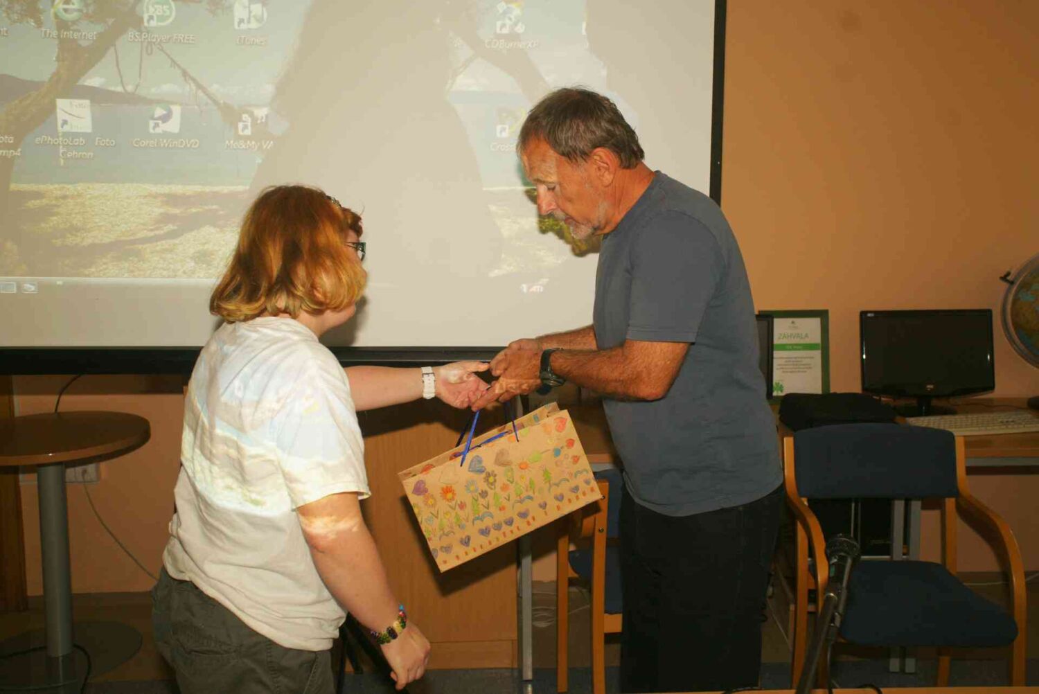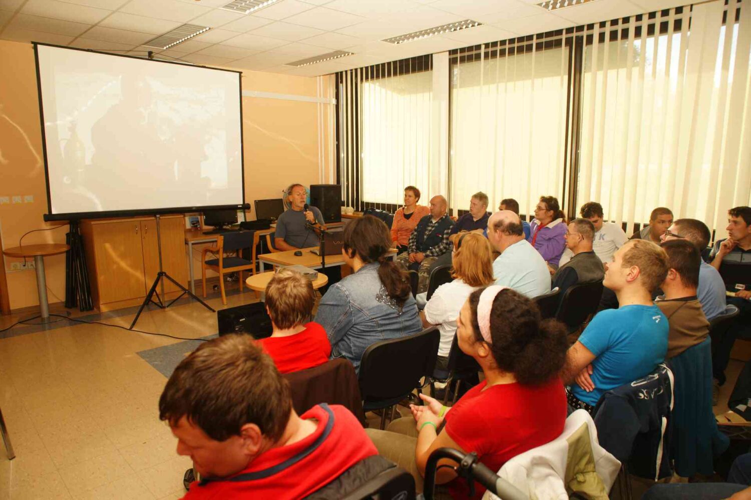 Predavanje je teklo ob fotografijah najvišjih vrhov sveta; Mount Everest, K2, Kangchenjunga, Lhotse, … ki jih je osvojil. Pripovedoval nam je o alpinističnih odpravah, osvojenih vrhovih, prijateljih plezalcih, uspehih in neuspehih, tudi nesrečah. Vse to je del alpinističnih odprav in je del življenja. Osupnile so nas strmine in ekstremne razsežnosti Himalaje in pogoji za življenje ljudi. Kot je napr.to, da je na vrhu osemtisočakov tudi do 40 stopinj pod ničlo ali da so včasih do vznožja gora potrebovali tri tedne hoje. Tudi to da ljudje, ki živijo pod temi nenavadno lepimi gorami, potrebujejo deset dni hoje do svojega zdravnika in da je vodovodna napeljava v hiši privilegij. Radovedno smo ga povprašali o občutkih na vrhu gore, o strahu, o bolečini, o prijateljih, o družini in prijazno nam je odgovarjal na vprašanja. Viki Grošelj o deželi na drugem koncu sveta, ki jo zelo dobro pozna, kjer je življenje drugačno, težko in skromno pove, da je Nepal zanj najlepša dežela na svetu… takoj za Slovenijo.