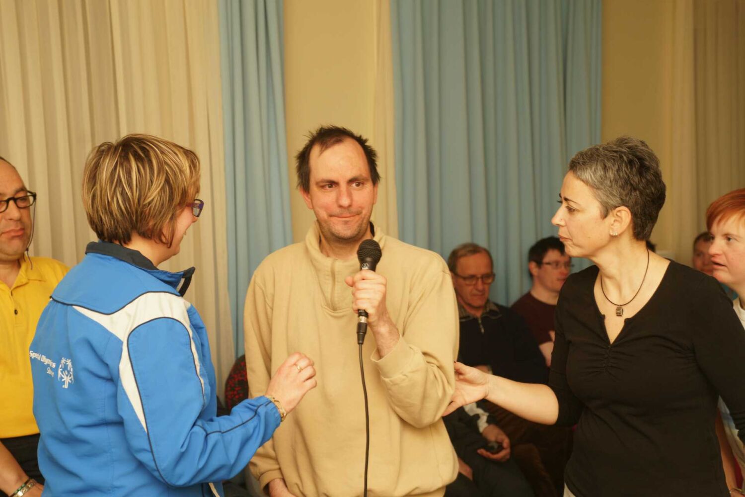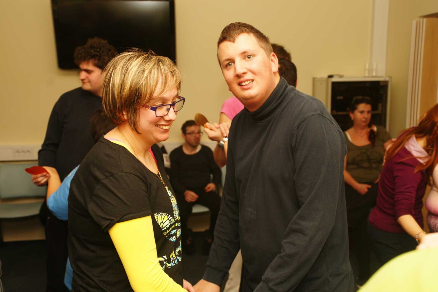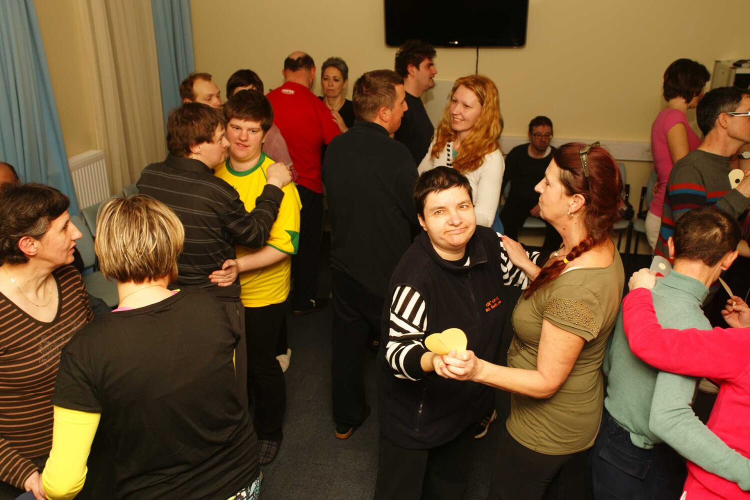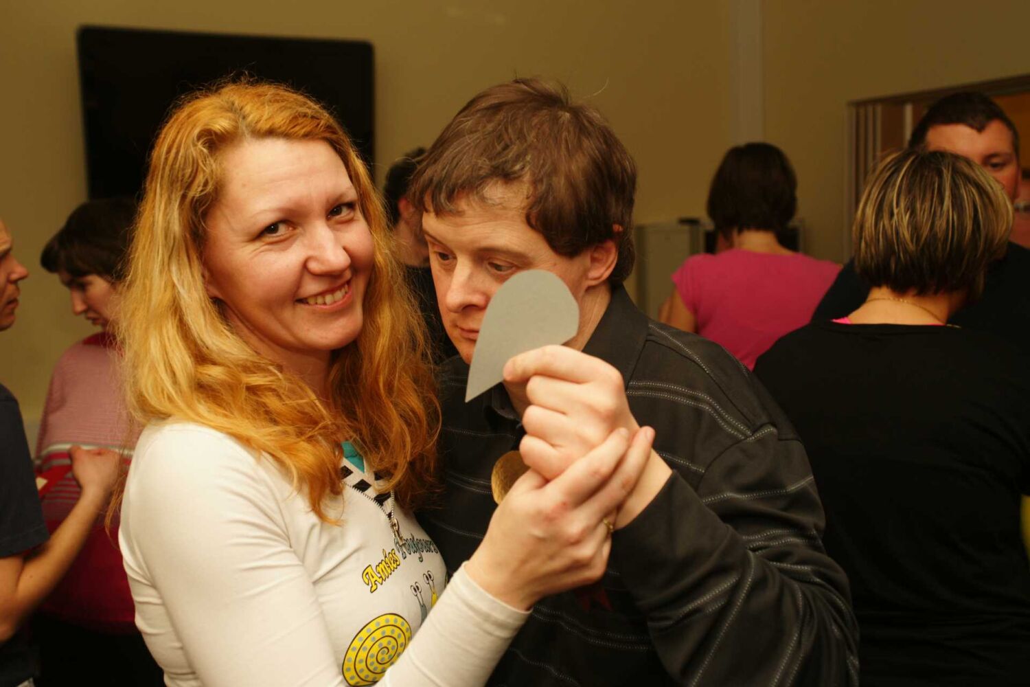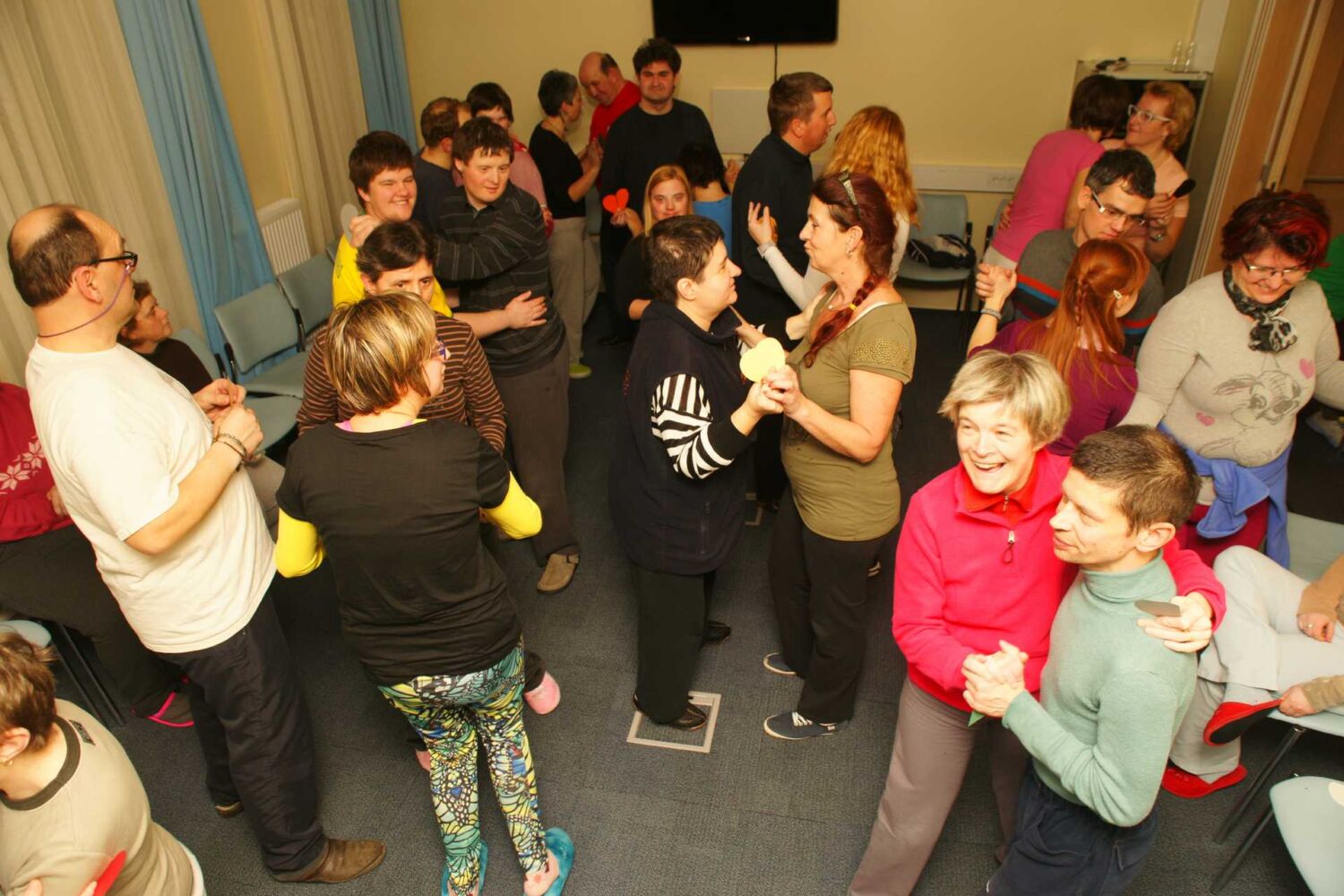 Pripravili smo srca, izrezana iz papirja, različnih velikosti in barv. Srca smo prerezali na pol. Uporabniki so nato vlekli vsak svojo polovičko srčka. Tisti par, ki se je ujel v srčkih, je zaplesal srčkov ples.