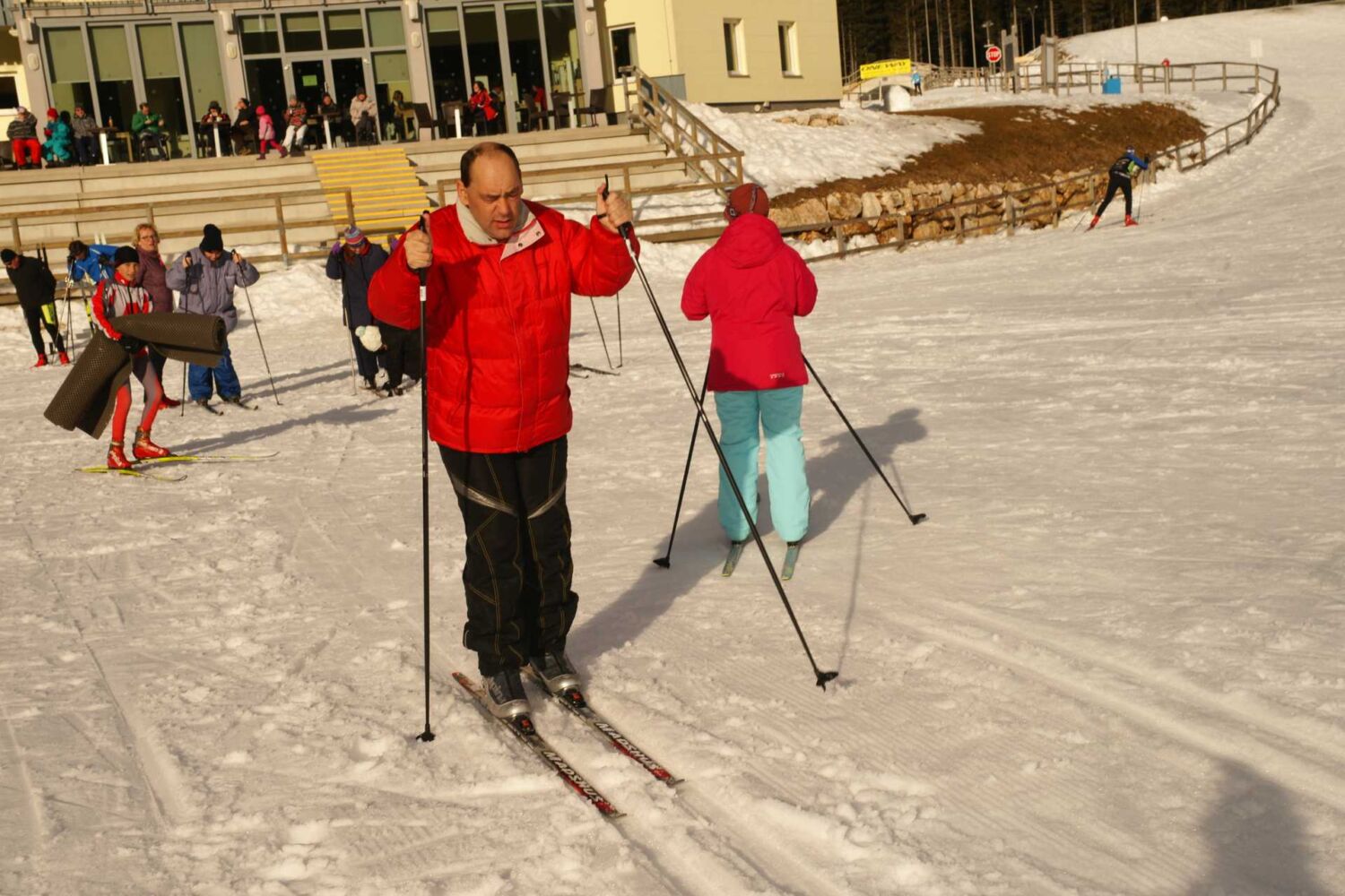 Tek na smučeh je rekreacija, zabava, veselje,…po parih krogih pa se nam je vseeno prilegel počitek, kavica, osvežitev s sokom.