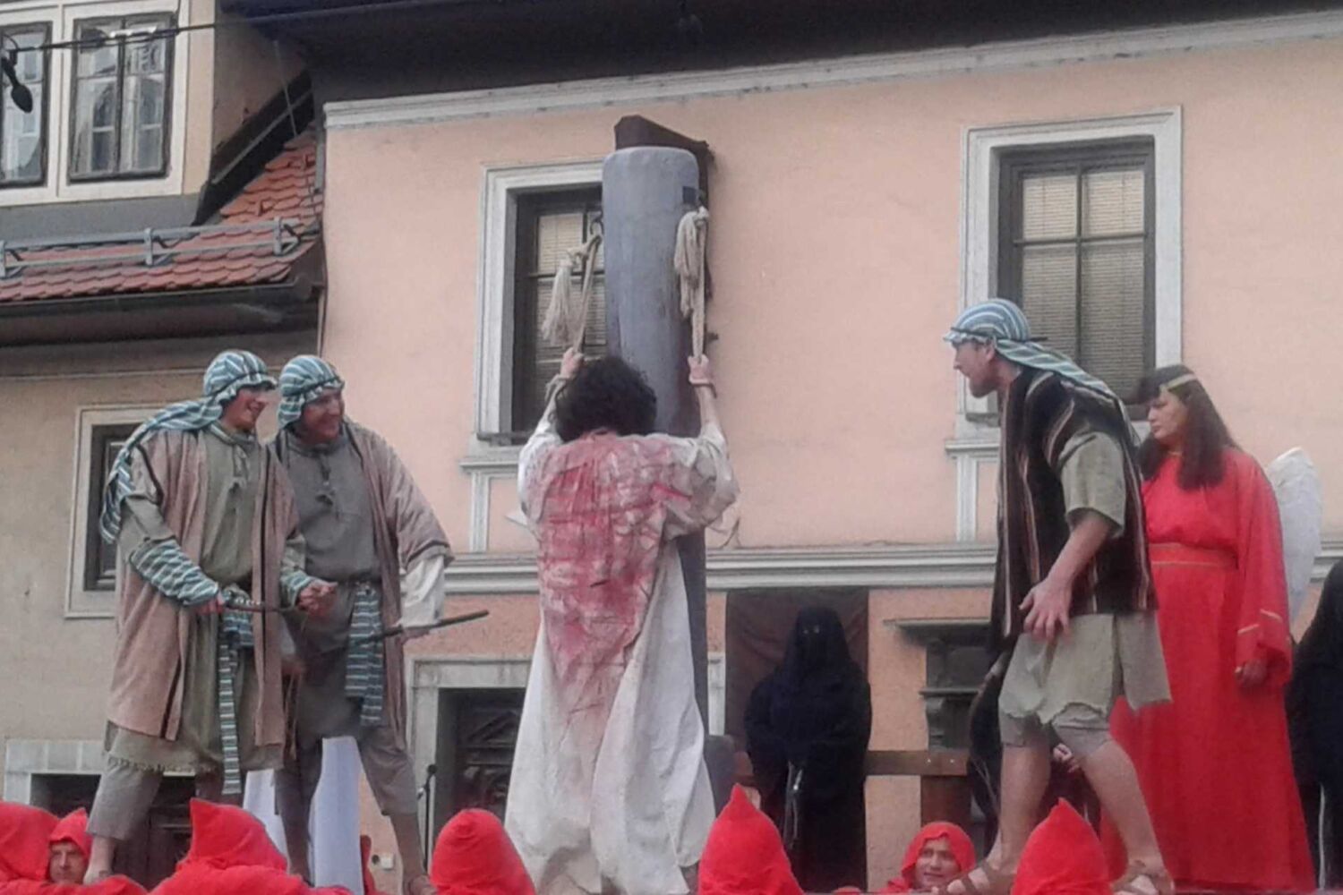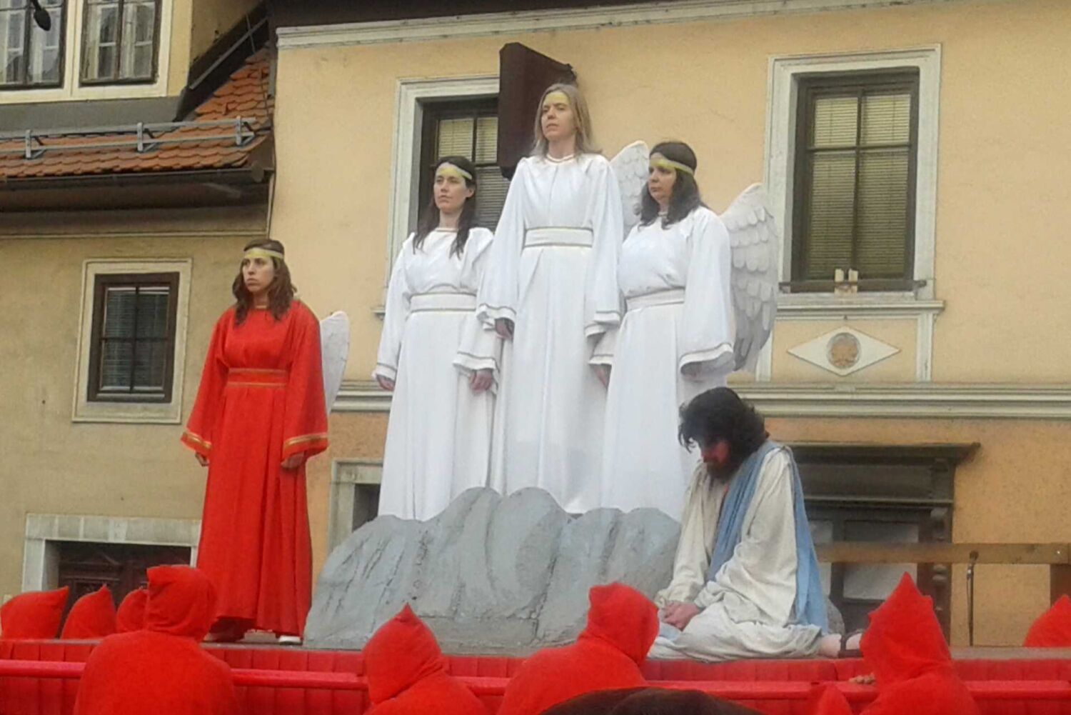 Predstavo smo si ogledali uporabniki in zaposleni na prizorišču pod gradom. Za podarjene karte se zahvaljujemo Pasijonski pisarni v Škofji Loki.