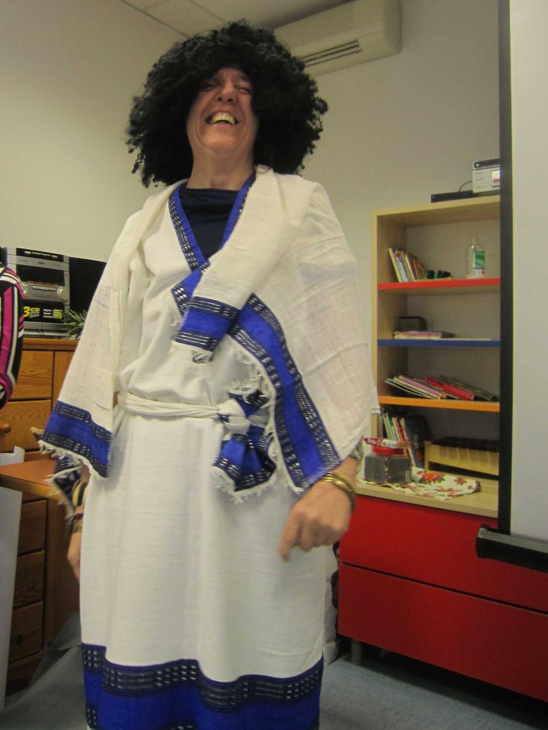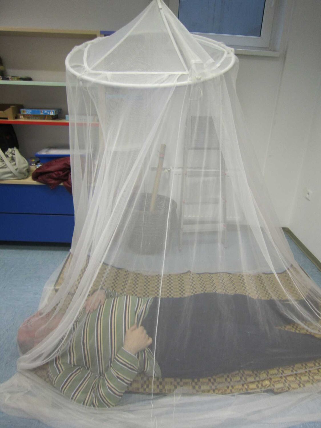 Sonja se je oblekla v afriška oblačila, Gregor pa je postal pravi afriški bojevnik, ki čuva in skrbi za svojo ženo, da je nihče ne ukrade. Ob tem seveda postane utrujen in se spočije na svojem ogrinjalu, ki ga razgrne po tleh, glavo pa položi na leseno stojalo, ki ga uporabljajo namesto vzglavnika.