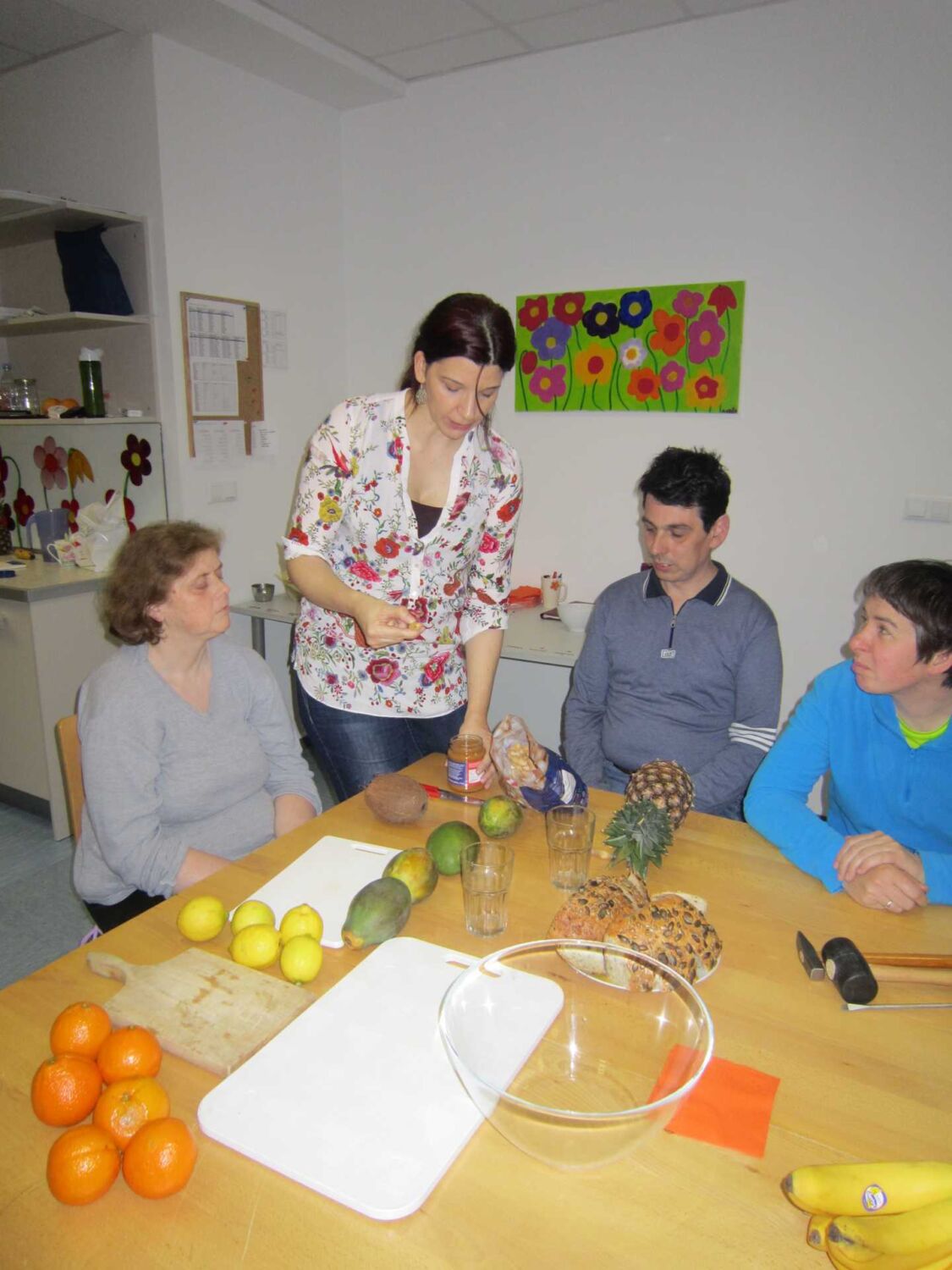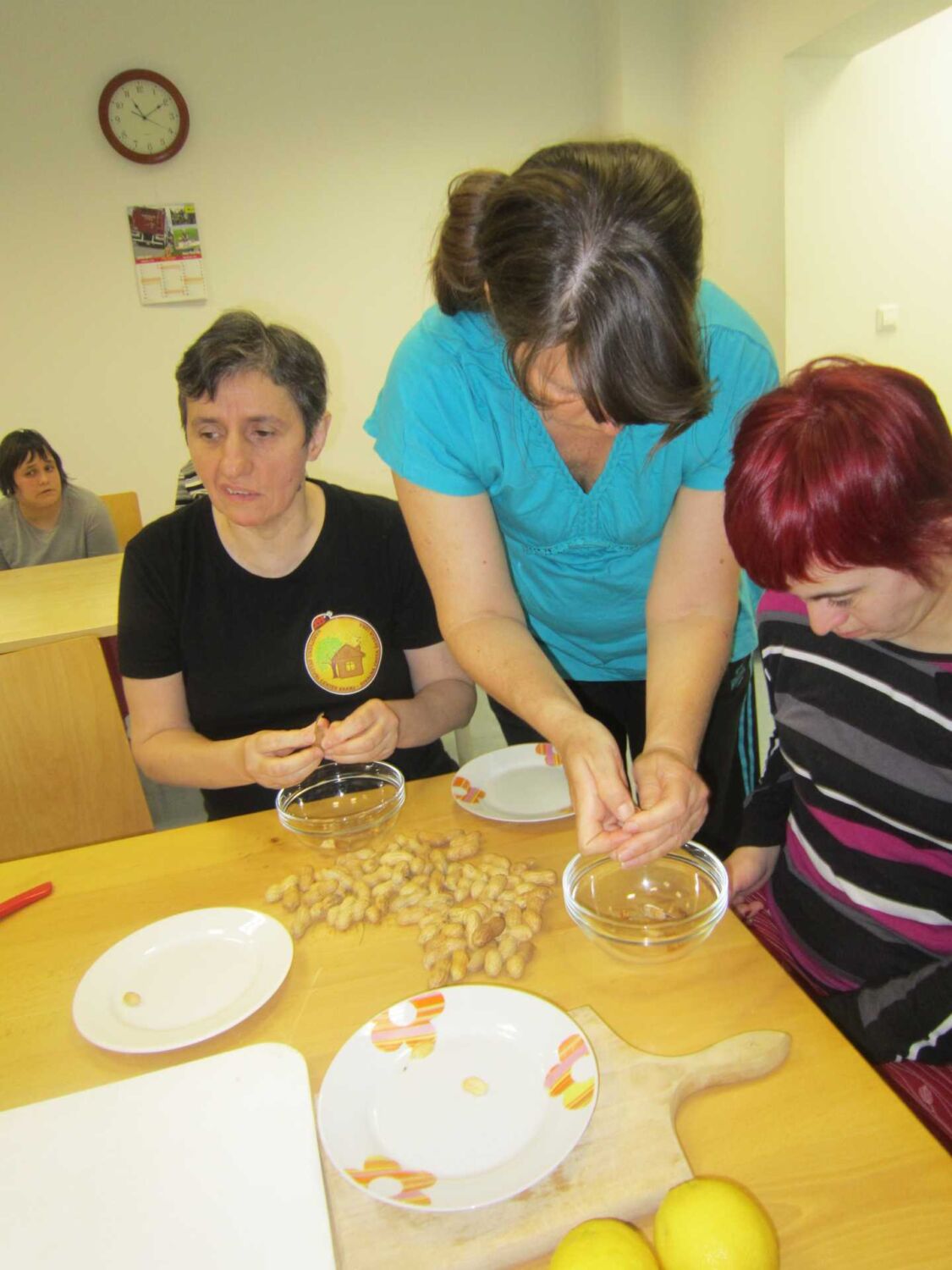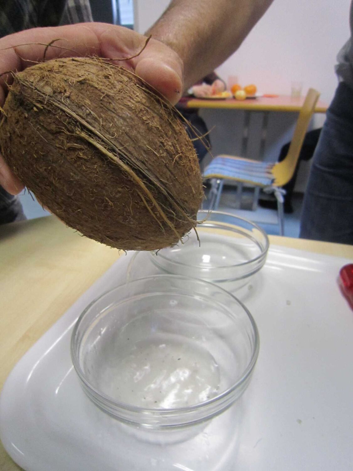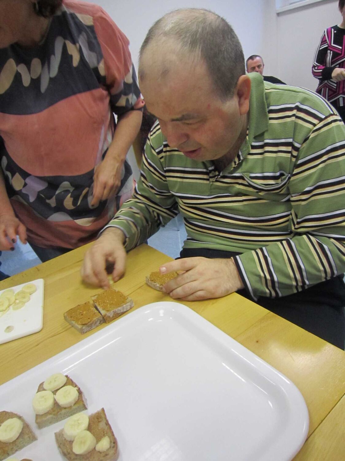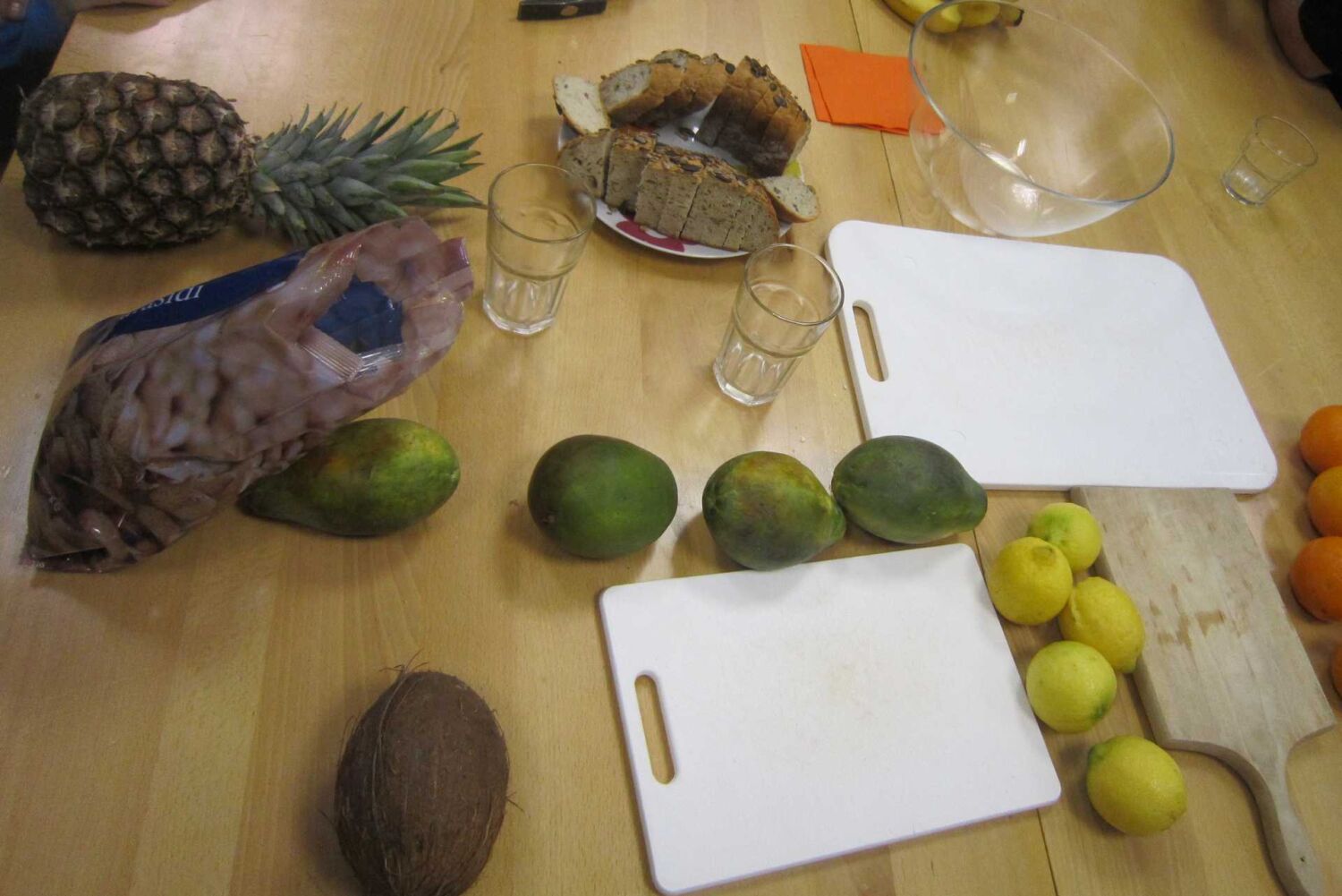 Spoznali smo od kod je kava, zakaj mi poznamo temno kavo, ki je v resnici zelena. Poskusili smo streti kokosov oreh, videli kakšna je papaja, oluščili arašide in pripravili dobro sadno solato. Najboljši pa so bili afriški sendviči: kruh, arašidov namaz in banana. Mljask.