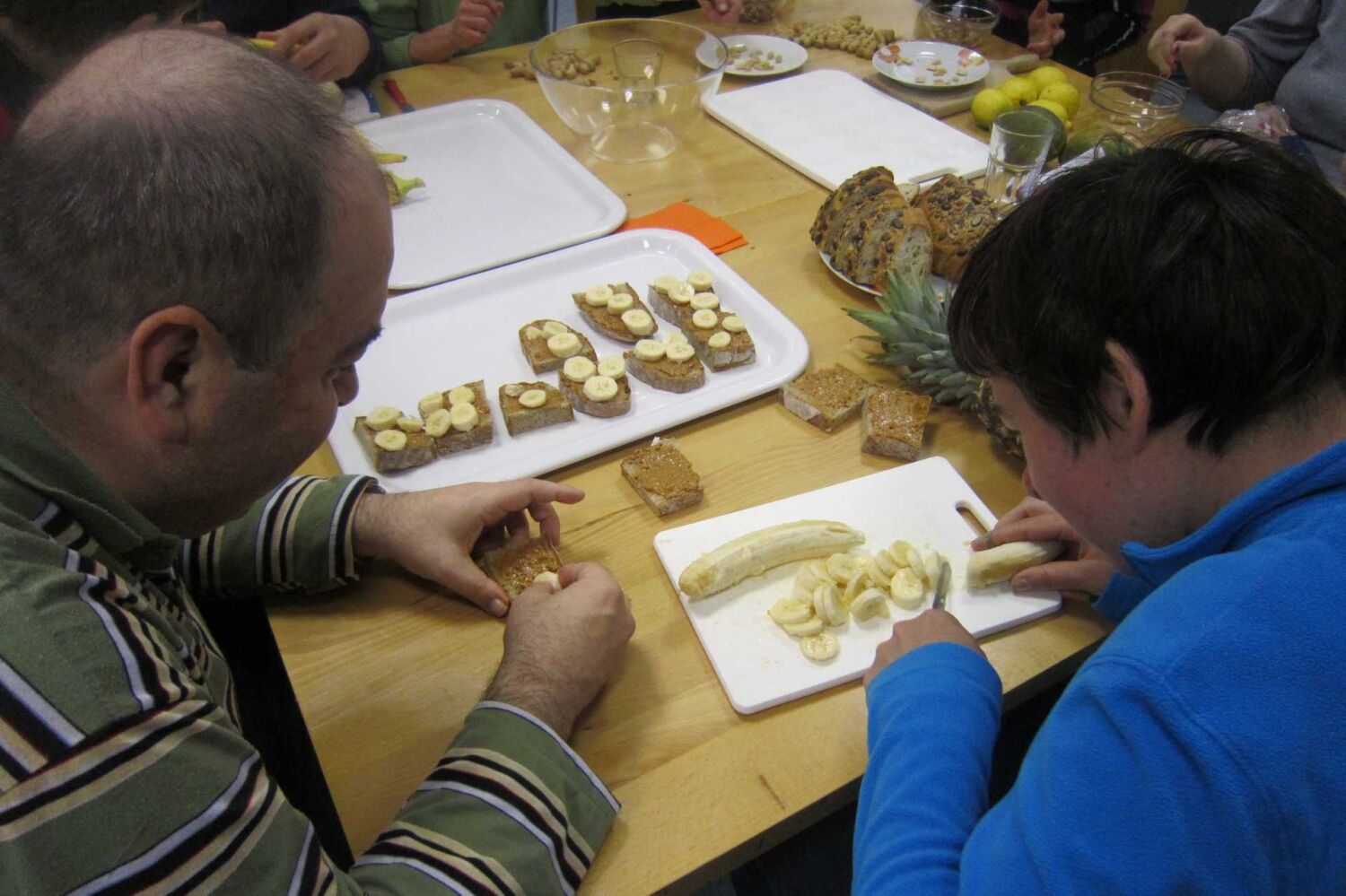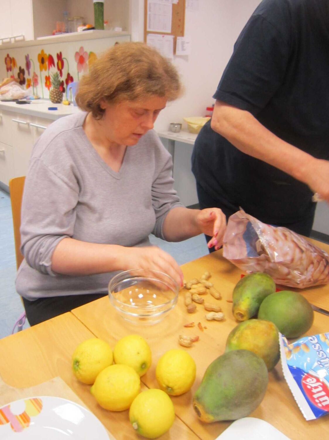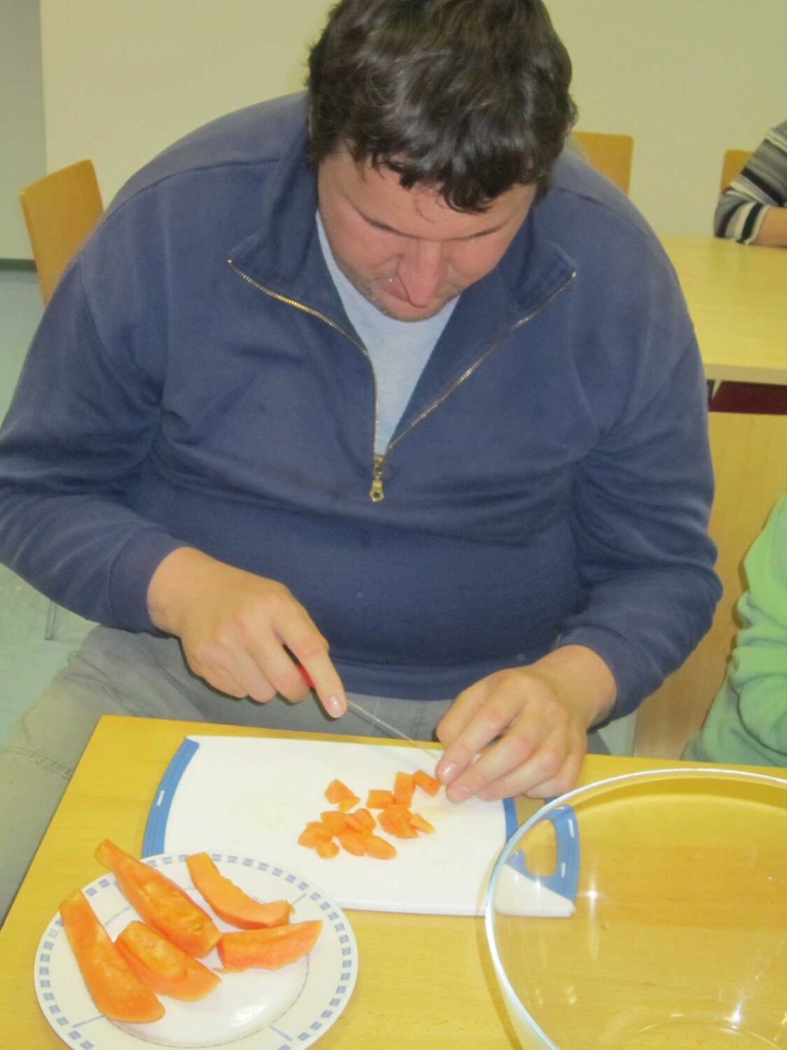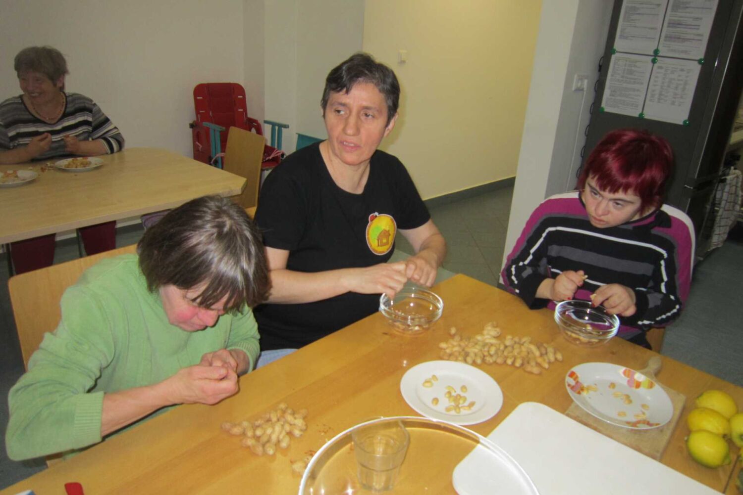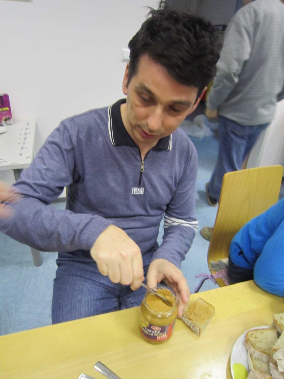 Spoznali smo od kod je kava, zakaj mi poznamo temno kavo, ki je v resnici zelena. Poskusili smo streti kokosov oreh, videli kakšna je papaja, oluščili arašide in pripravili dobro sadno solato. Najboljši pa so bili afriški sendviči: kruh, arašidov namaz in banana. Mljask.