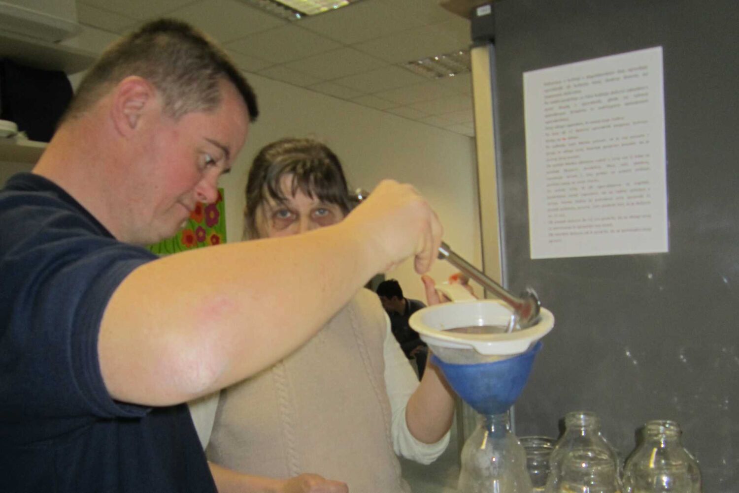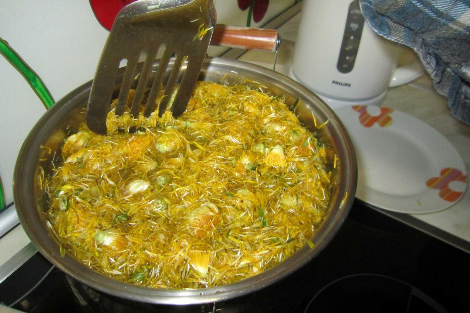 Ker smo imeli vse rožice pomešane, smo sprva ločili regratove cvetove. Vse ostale rožice smo dali na sušenje, da bomo imeli dober čaj. Regratove cvetove pa smo očistili in jih pripravili za sirup. Bilo je kar veliko dela, da smo ločili “pleve” od cvetja 🙂 . Pripravljeno cvetje smo nato dali v 4 litre hladne vode in postavili na štedilnik, kjer smo ga počasi kuhali do vretja. Kuhali smo ga približno 10 minut, nato pa precedili skozi gosto cedilo. Tako pripravljeno tekočino smo znova postavili na štedilnik, dodali 2 kg sladkorja, tri z lupino narezane limone in ponovno zavreli, da se je sirup lepo zgostil. Na koncu smo ga nalili v steklenice. Sirup je odličen, poskrbi pa tudi za dobro odvajanje vode iz telesa.
