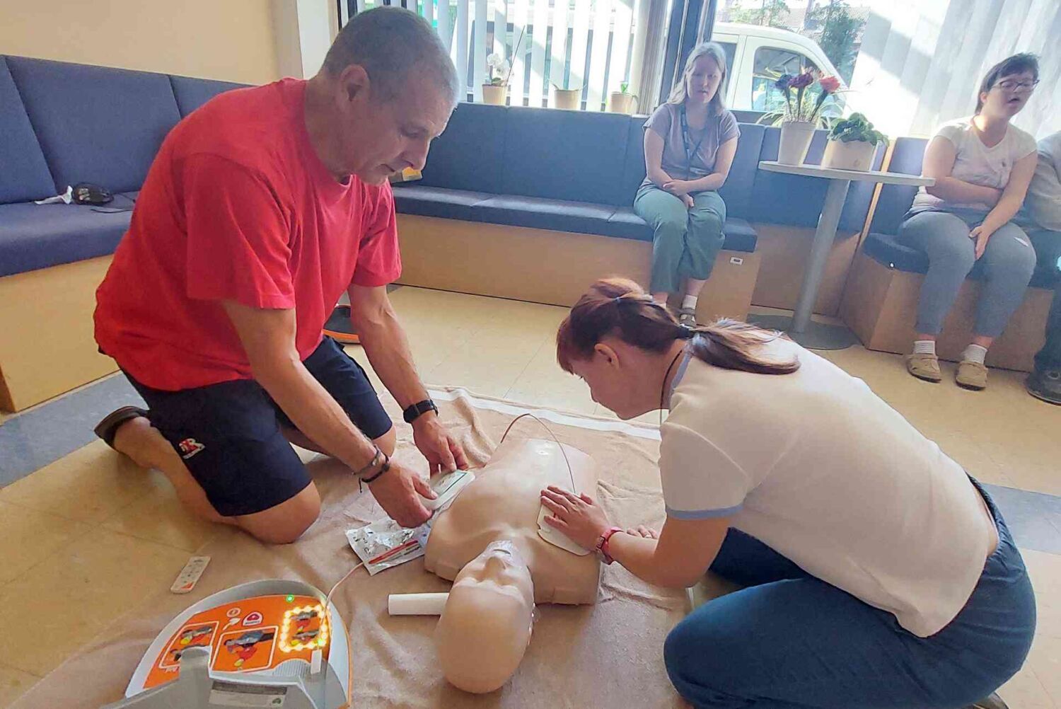Danes je bil v enoti VDC Kranj prav poseben in srčen dan. Dopoldan smo posvetili izredno pomembni temi – temeljnim postopkom oživljanja in uporabi defibrilatorja, znanju, ki dobesedno lahko rešuje življenja. Skozi delavnice smo pridobili znanje o oživljanju in se naučili pravilne uporabe defibrilatorja. Zakaj? Ker nikoli ne vemo, kdaj bomo prav mi tisti prvi na mestu, ko bo nekdo potreboval pomoč. Takrat šteje vsaka sekunda – še bolj pa znanje.