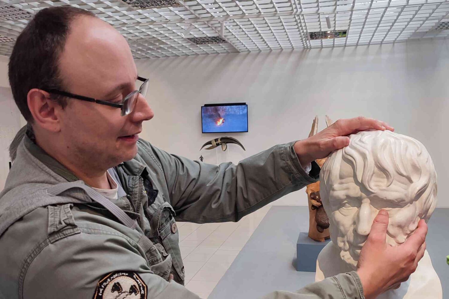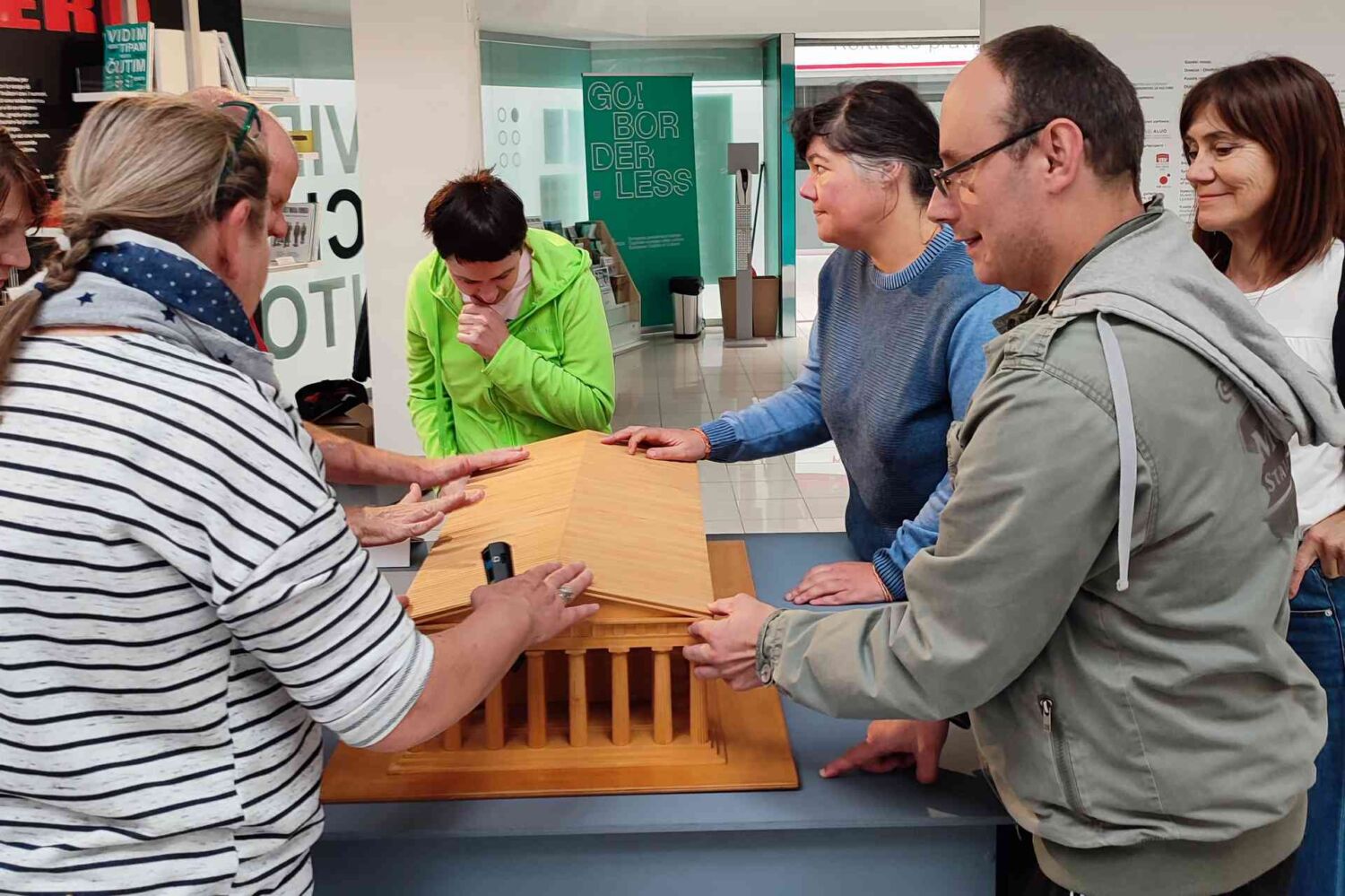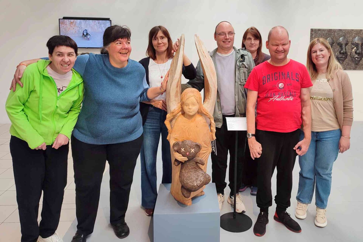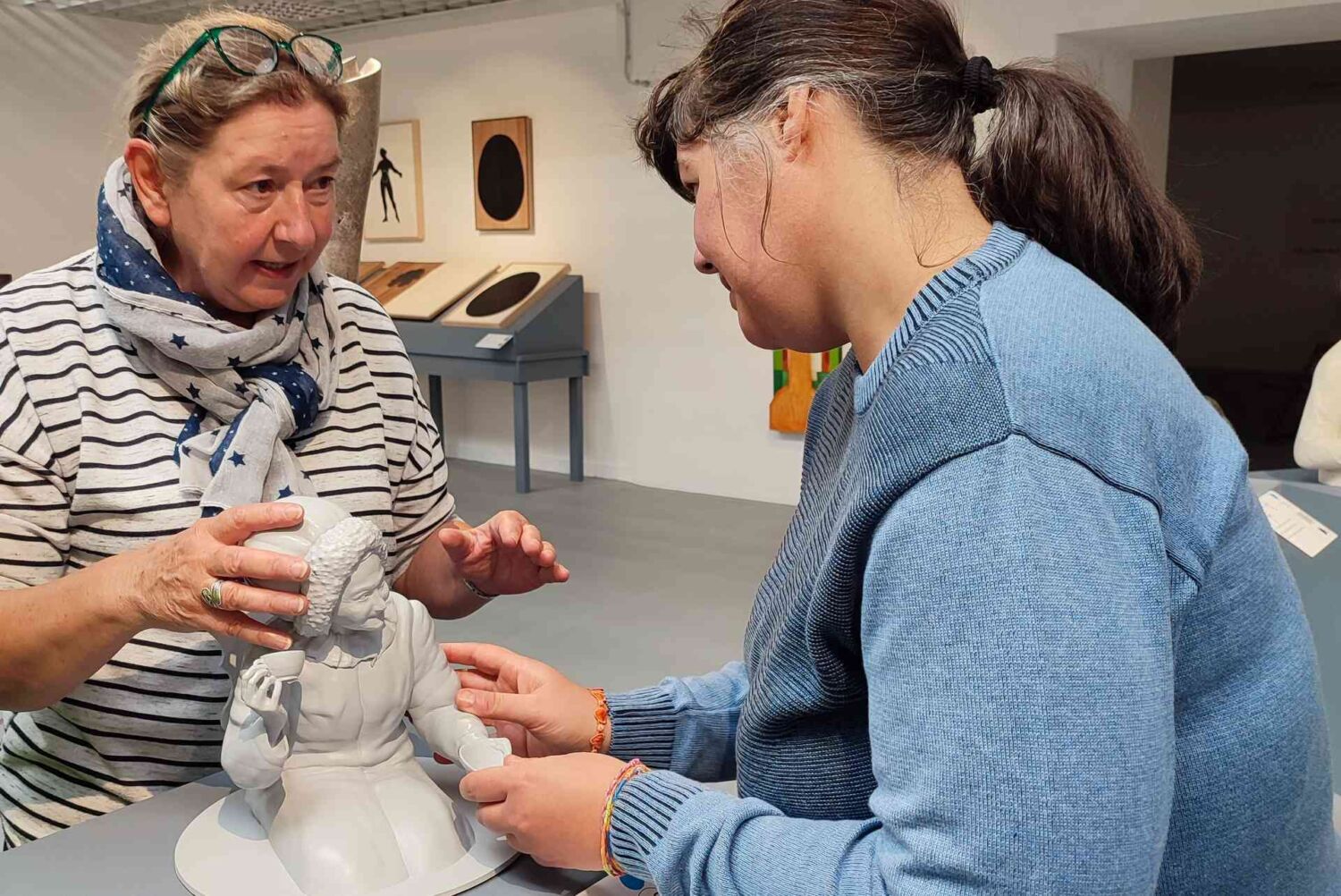 Namesto običajnega opozorila »Ne dotikaj se« nas je vodička prijazno povabila, da umetnost resnično začutimo – z rokami. Obiskovalci smo se dotikali replik umetniških del, ob tem pa poslušali zanimive zgodbe in si ogledali video, ki je prikazal nastanek umetnin, ustvarjenih v sodelovanju umetnikov z osebami s slepoto in slabovidnostjo.