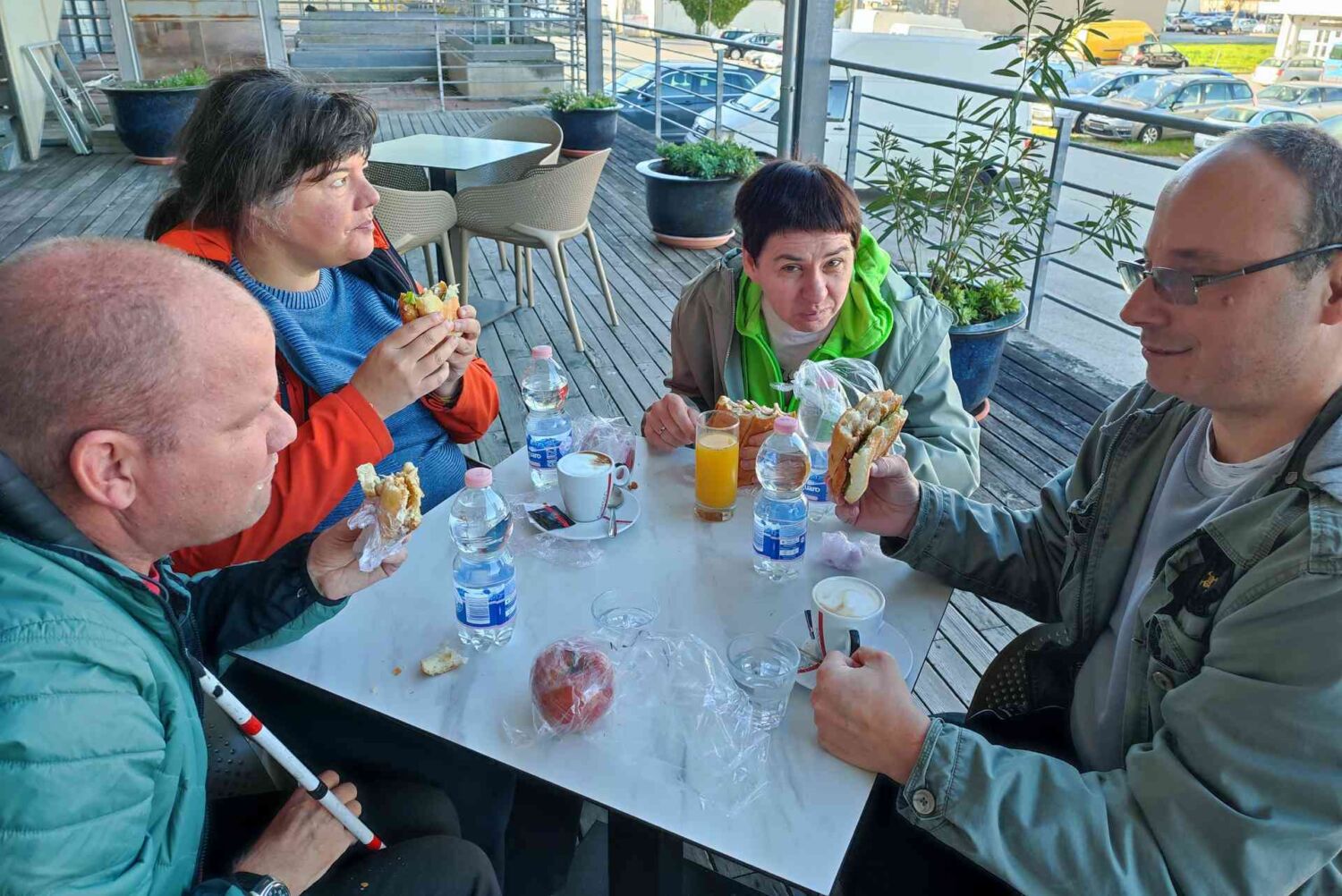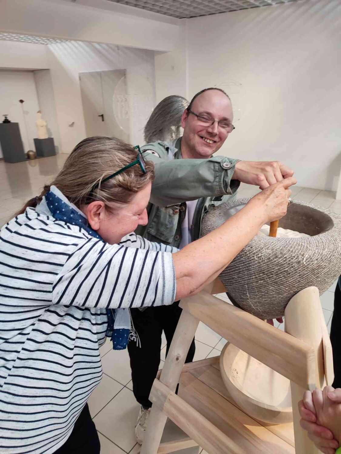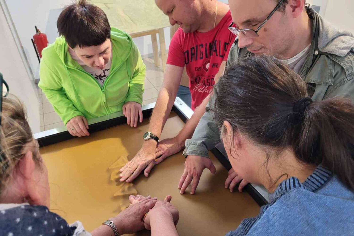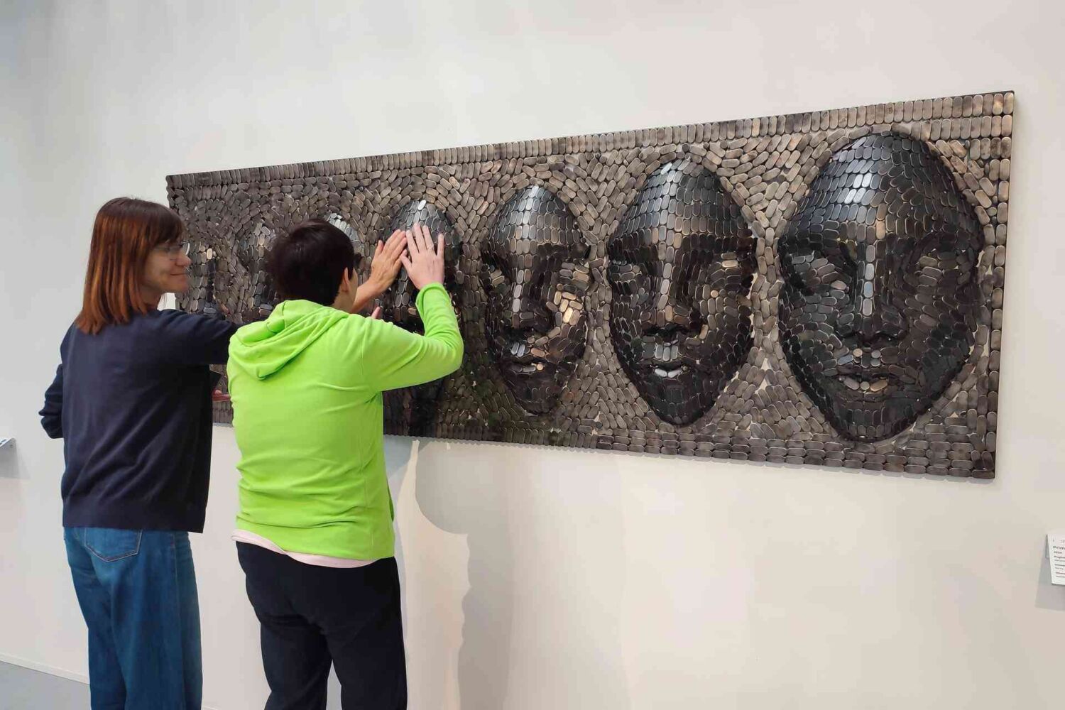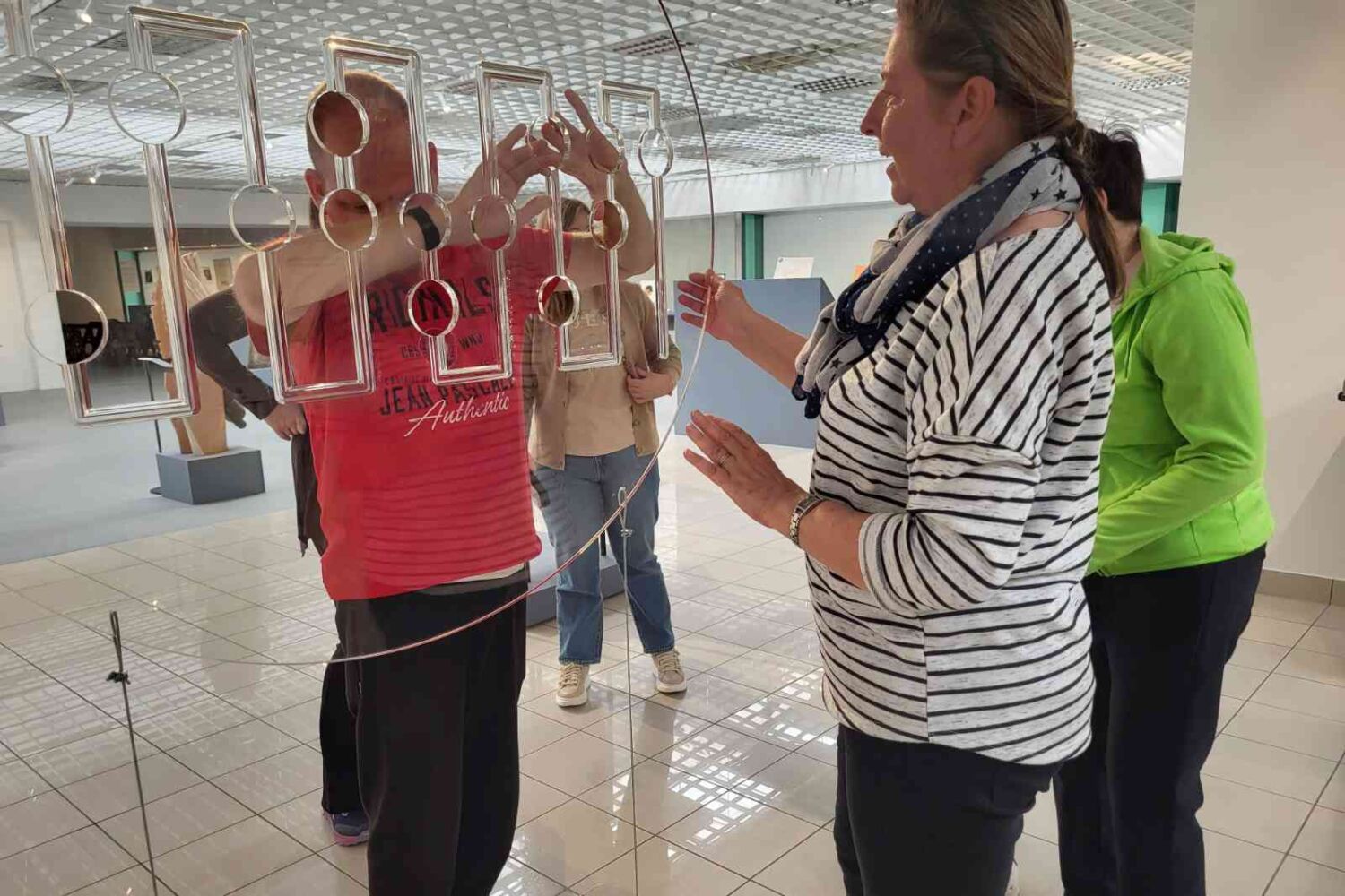 Namesto običajnega opozorila »Ne dotikaj se« nas je vodička prijazno povabila, da umetnost resnično začutimo – z rokami. Obiskovalci smo se dotikali replik umetniških del, ob tem pa poslušali zanimive zgodbe in si ogledali video, ki je prikazal nastanek umetnin, ustvarjenih v sodelovanju umetnikov z osebami s slepoto in slabovidnostjo.