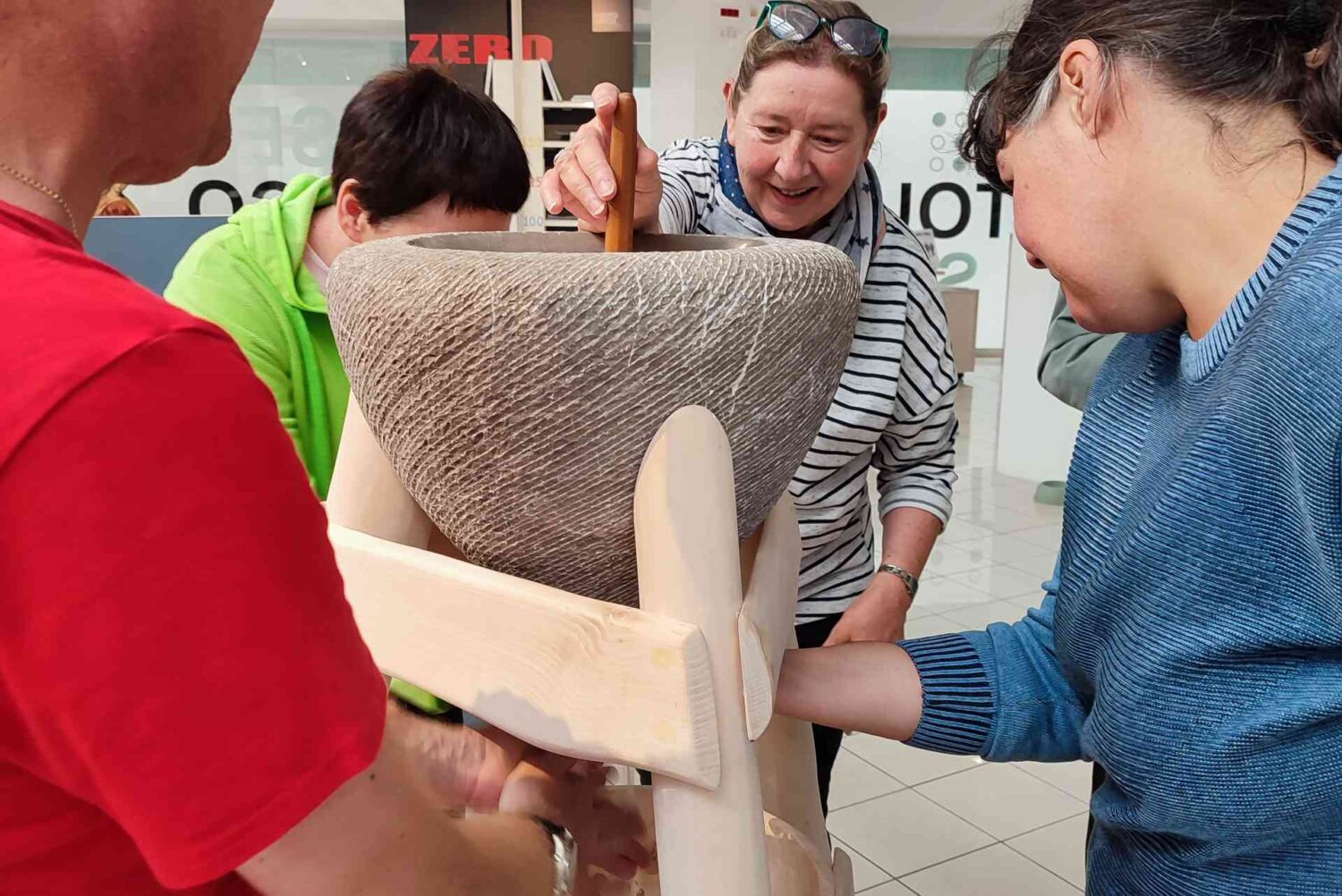 Med sprehodom po galeriji smo zaznavali tudi vonjave lesa – med drugim bora in oljke – ter v rokah držali kar 6560 let staro palico iz jelke, kar je izkušnji dodalo poseben zgodovinski pečat.