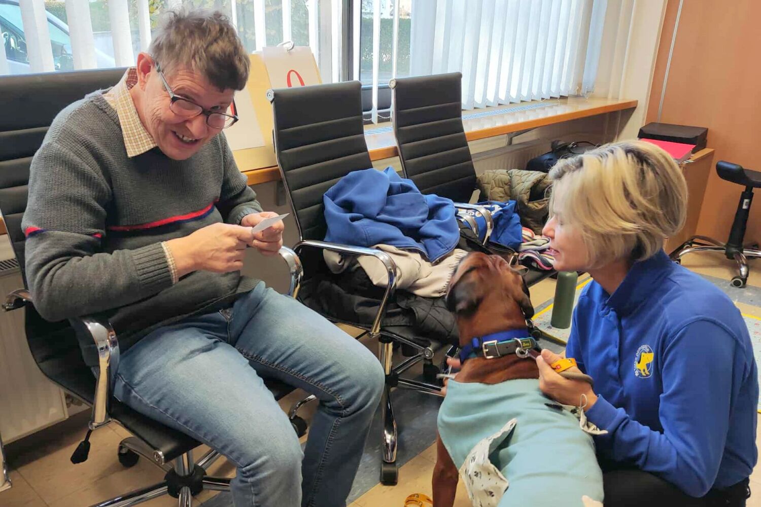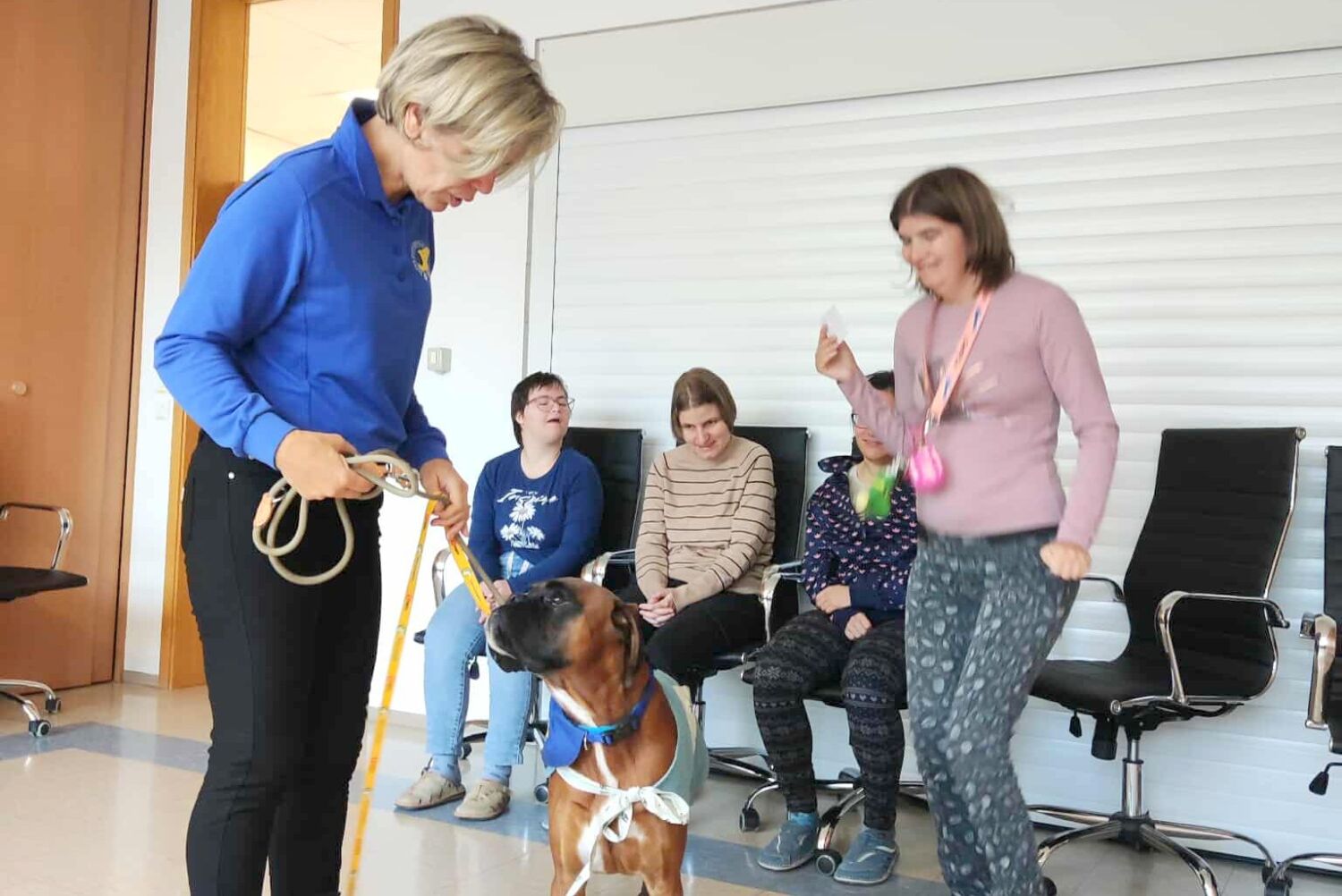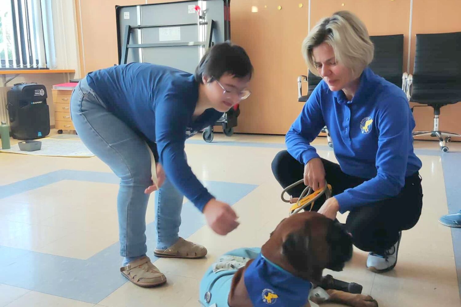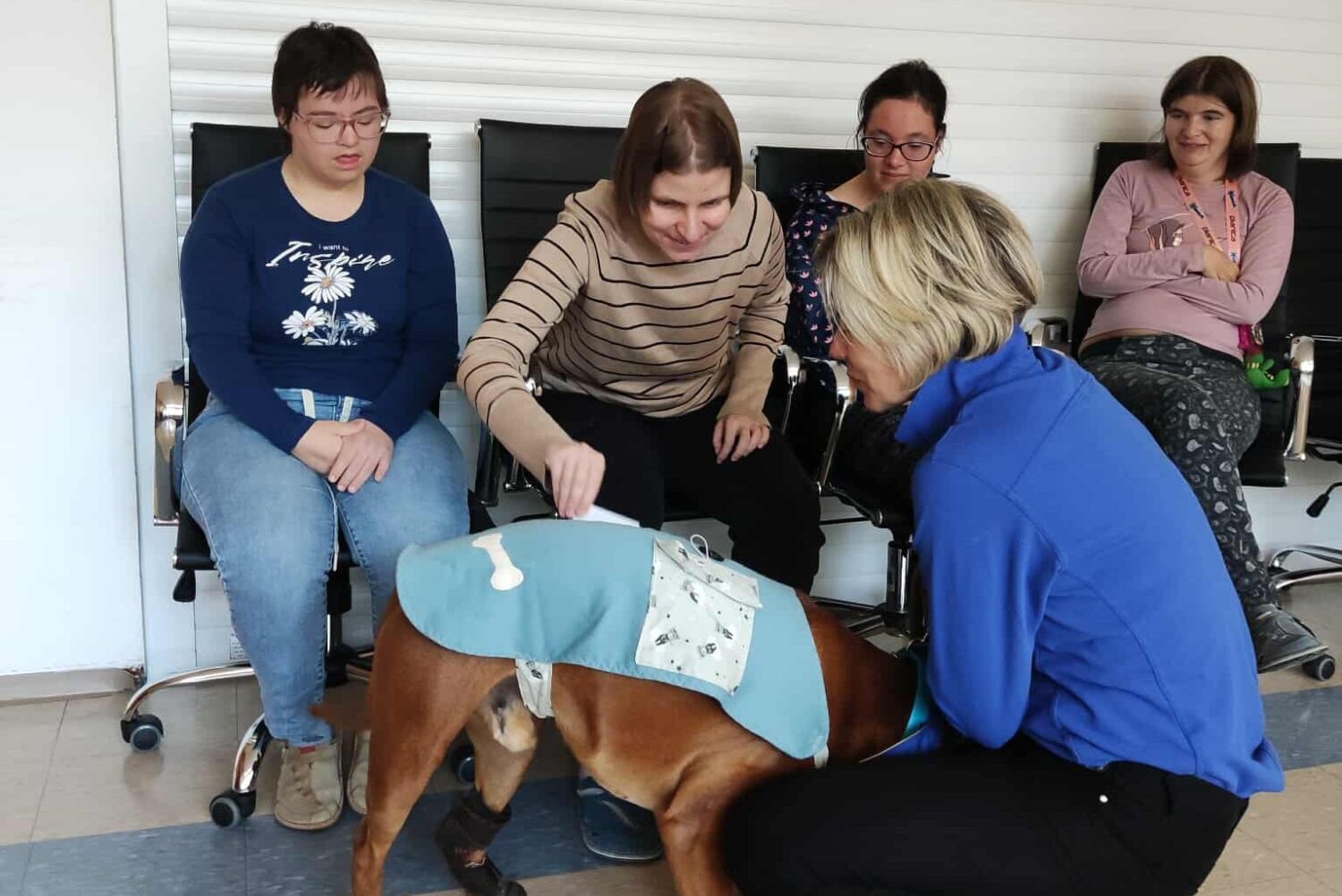 V našem zavodu že vrsto let uspešno sodelujemo z društvom Tačke pomagačke. Skupaj izvajamo terapijo s psom kot del programa naše storitve VVZPP. Gre za strokovno vodeno obliko podporne terapije, pri kateri posebej usposobljen terapevtski pes in njegov vodnik sodelujeta z našimi uporabniki z namenom izboljšanja njihovega počutja, socialne vključenosti ter osebnega razvoja.