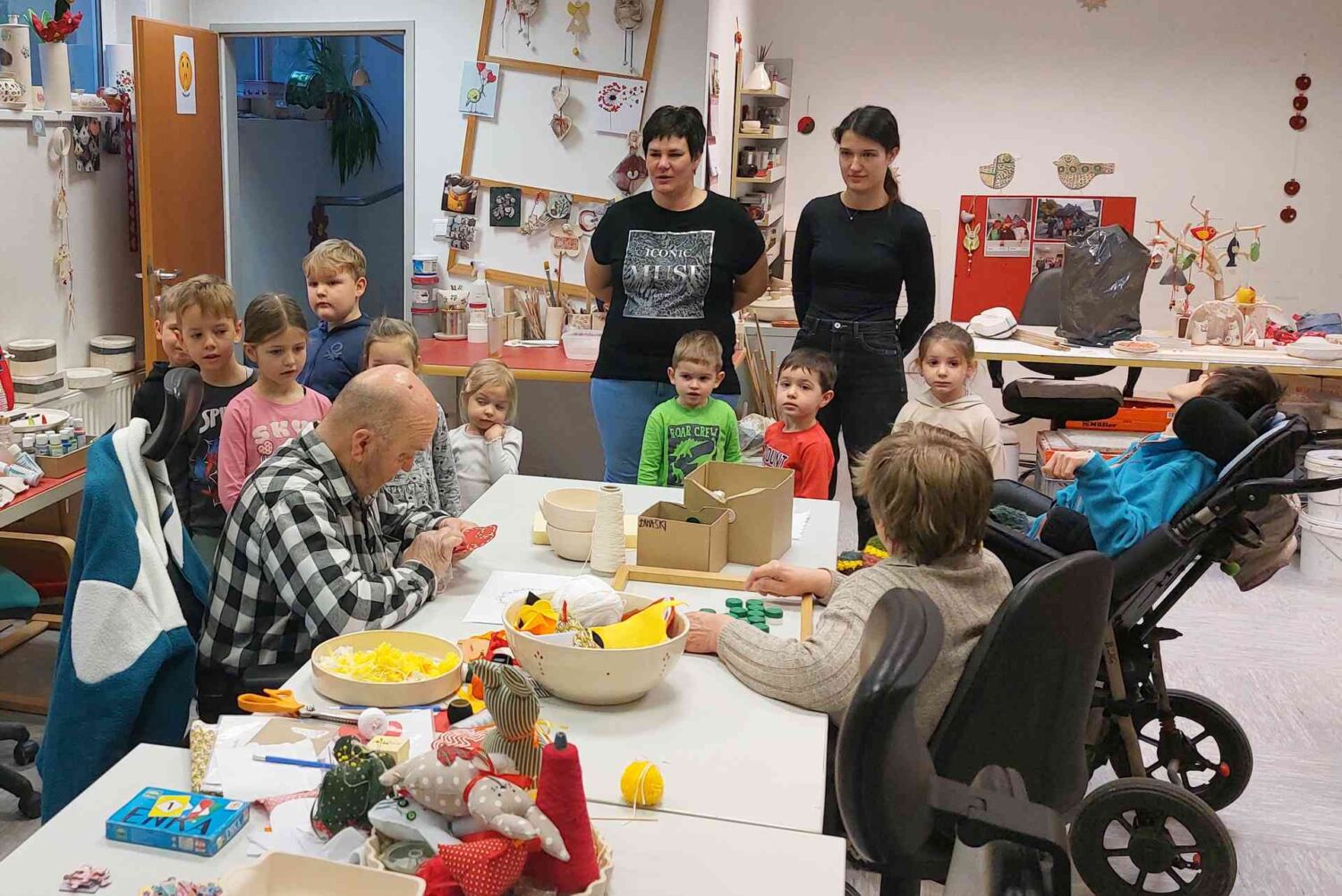 Popeljali smo jih tudi po delavnicah, kjer so spoznavali nastajanje izdelkov našega programa in kooperantsko delo.