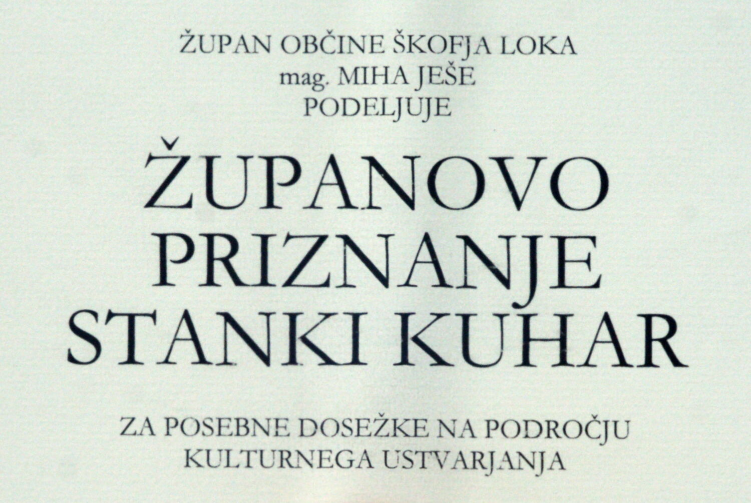 Stanka Kuhar prejela priznanje župana občine Škofja Loka
